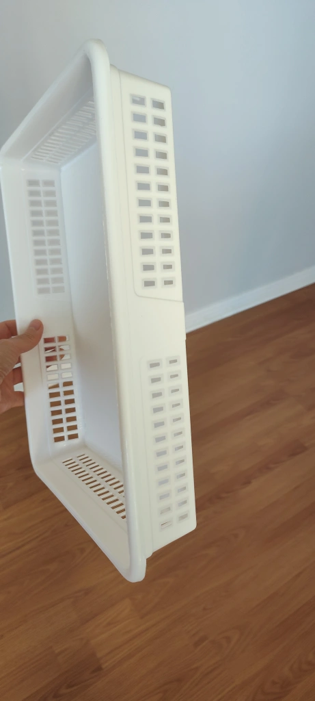 Selling a white storage basket. It's in great condition and perfect for organizing items around the house.