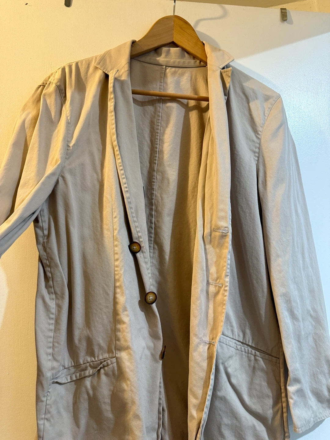 This is a beige blazer from The Private Collection. It is hand tailored with the world's finest and rarest fabrics. It's in great condition and ready for a new home