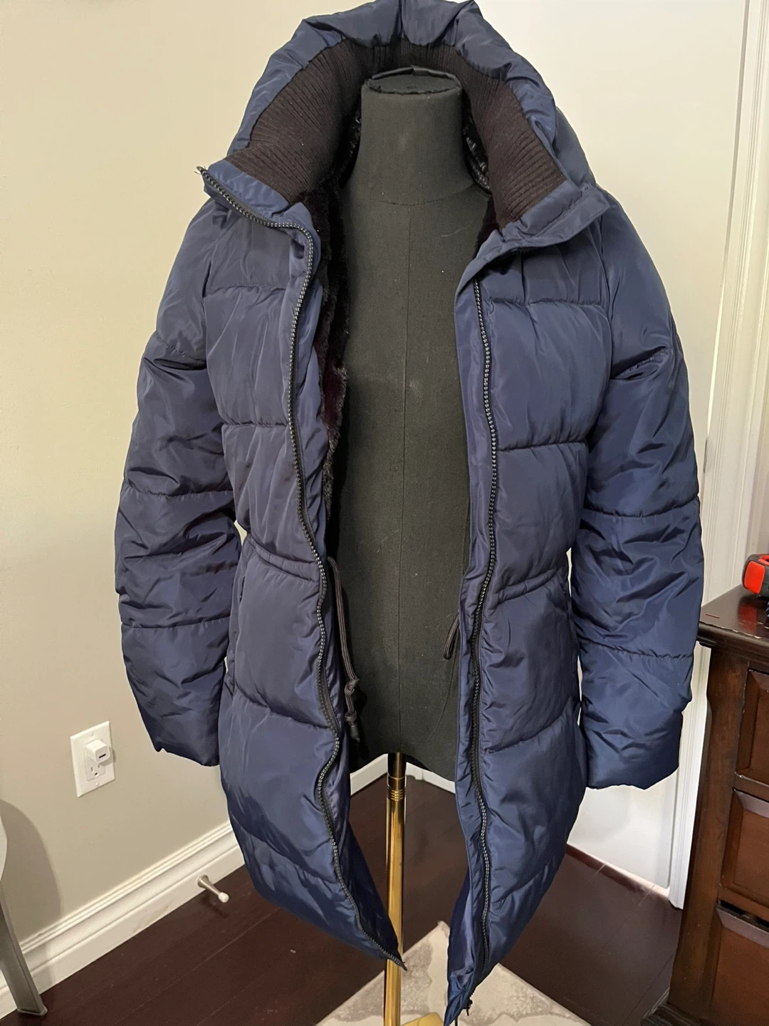 10Winter puffer jacket in size XS/TP. It's a lovely blue colour and has a warm, cozy lining. Perfect for staying warm during the colder months!