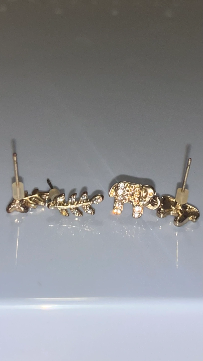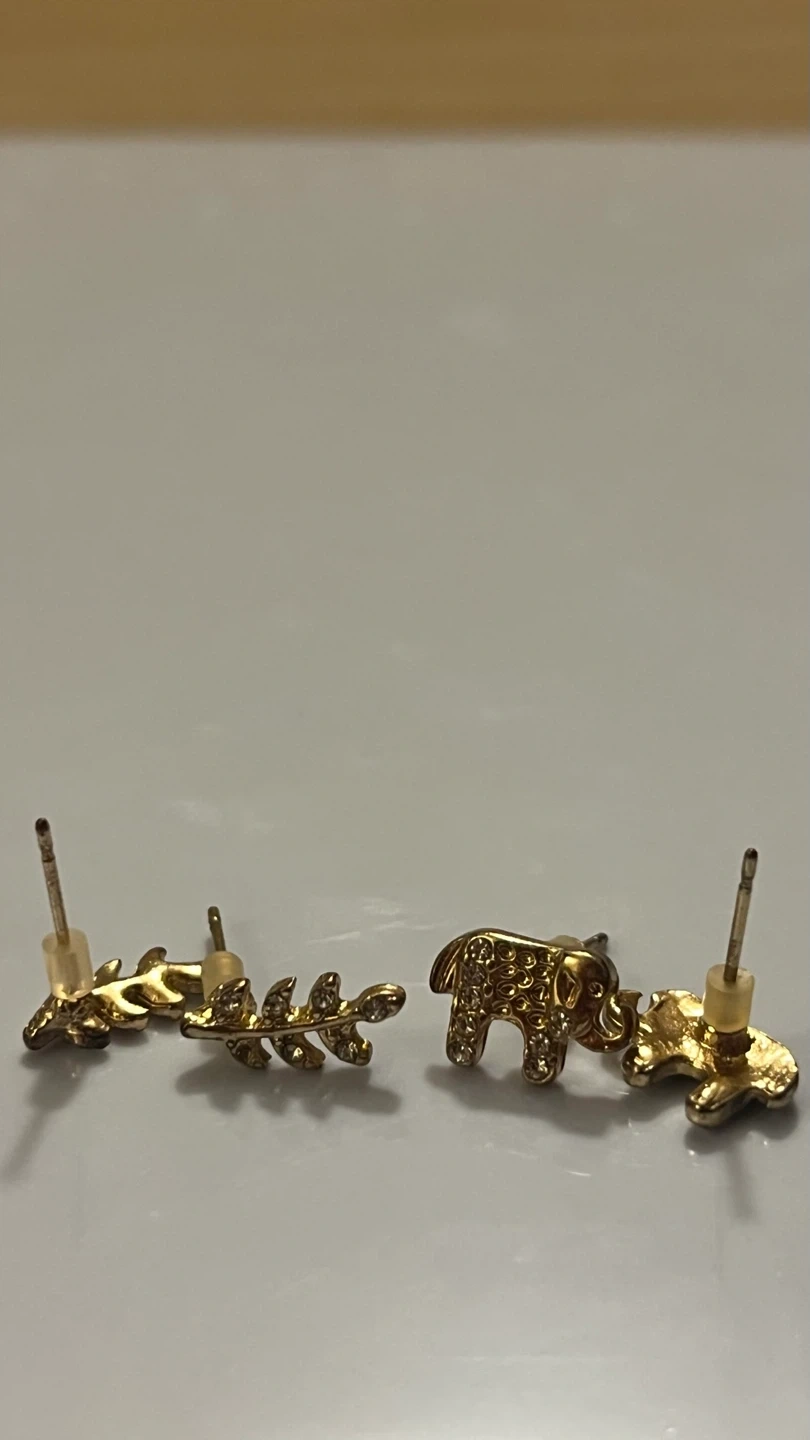 $3 each or 2 for $5! I’m selling 2 sets of cute gold-coloured earrings at a really good price for you! One pair is shaped like elephants and the other like a leaf. They are in great condition! No stones missing and is ready to go to a new owner! Maybe someone who loves elephants 🐘! They’re just giant puppies anyway lol Let me know if interested in purchasing from me thx 🙏💕 Pick up only ☺️ (available between 11am-6pm) Located at Queen and Sherbourne intersection 🙌 Check out my listings for more deals! 🤩 🔥 Bundle items for a discounted price (excluding items $5 and under)🔥