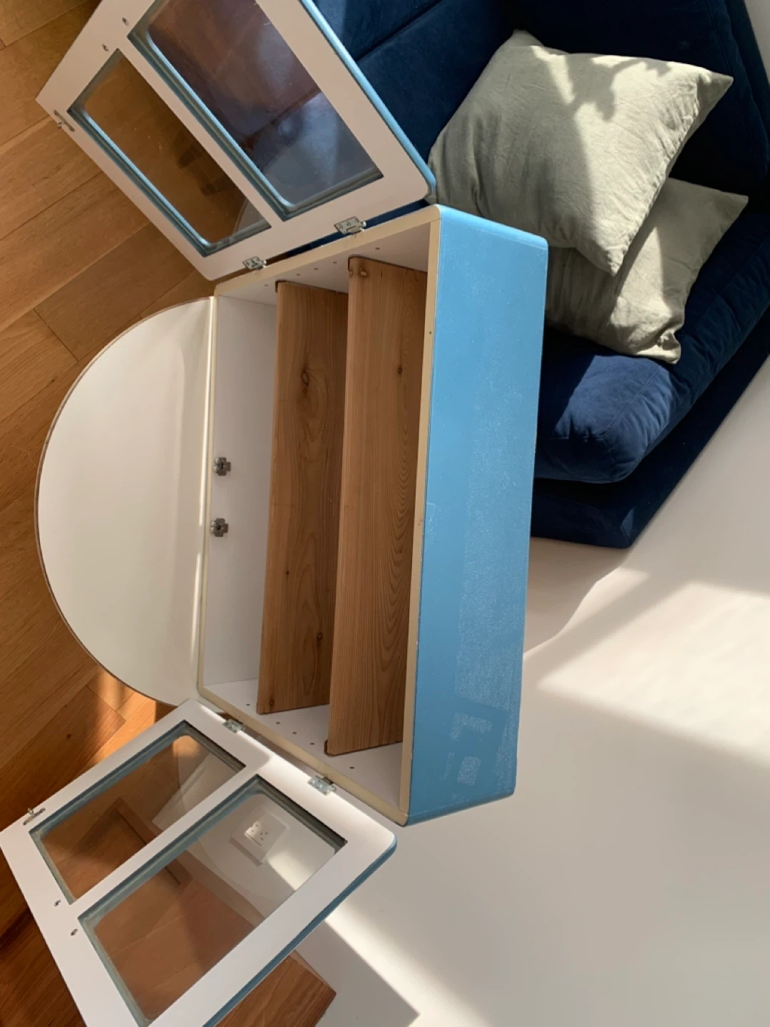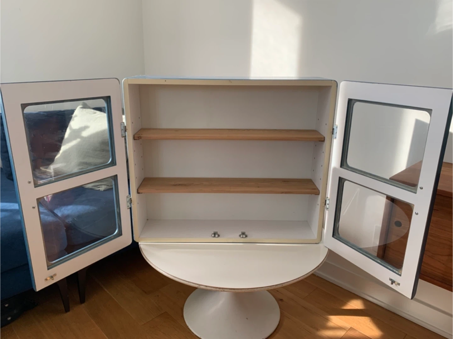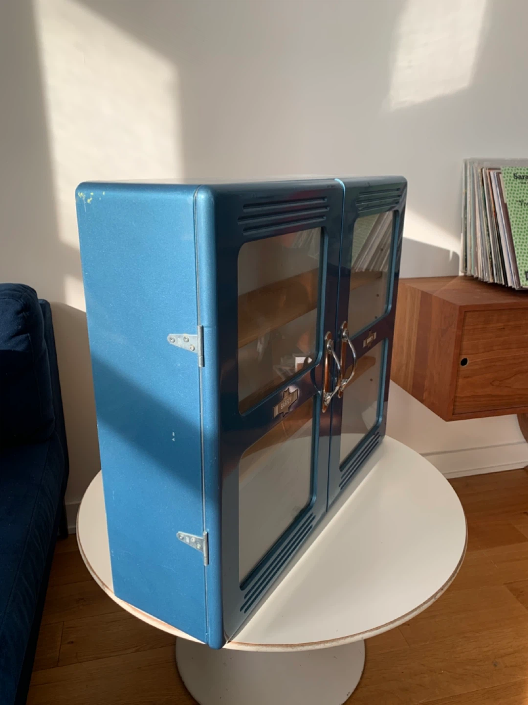 Selling a fun retro custom Barfly cabinet in blue. Made in Toronto and originally purchased from a shop on Queen West. Such a charming and versatile piece. Over time I’ve used it to store CDs, pantry items and herbal medicines. In overall excellent condition. Some light scratches to finish (see photo of most significant scuff). Very sturdy and a heavier piece. Features glass doors and adjustable wooden shelves. Pick up around Keele St and Dundas St W.