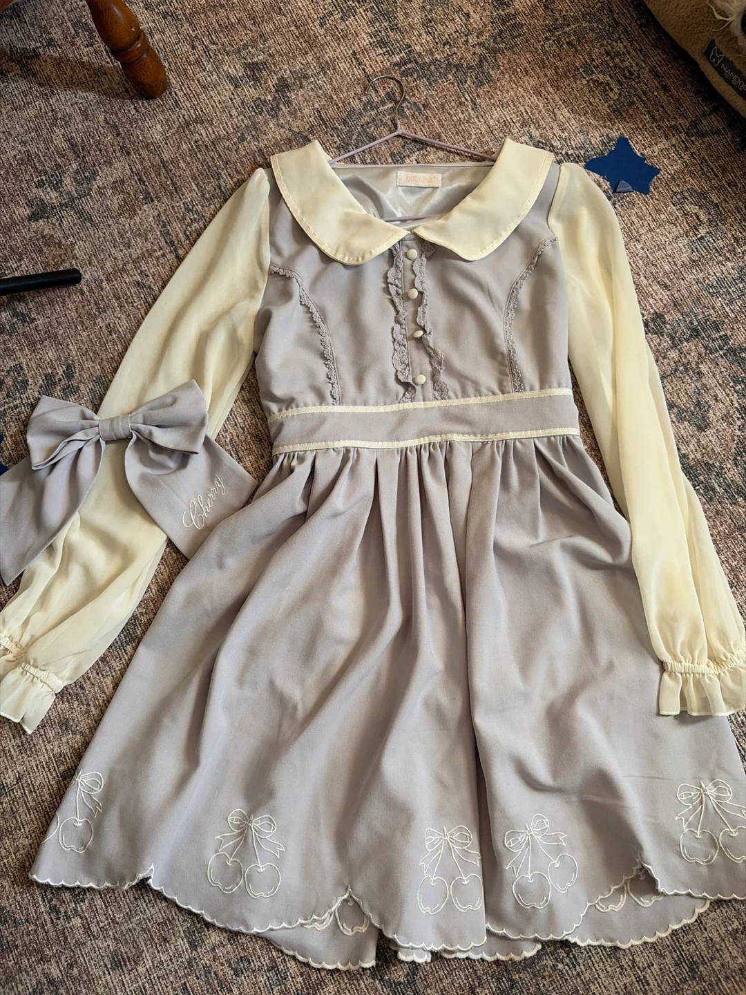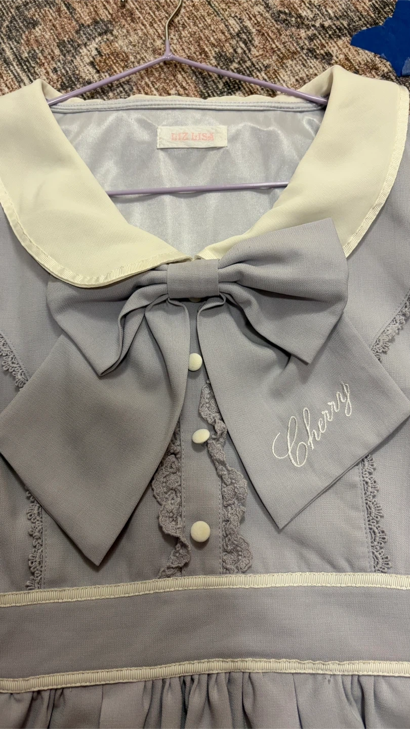 Selling a Liz Lisa dress with cherry embroidery! It's a lovely periwinkle blue colour with a cute bow detail. Perfect for a sweet lolita or fairy kei look.