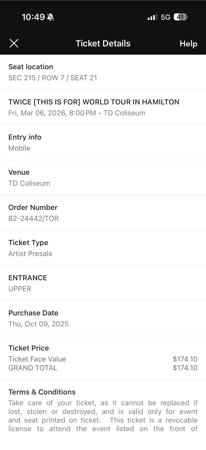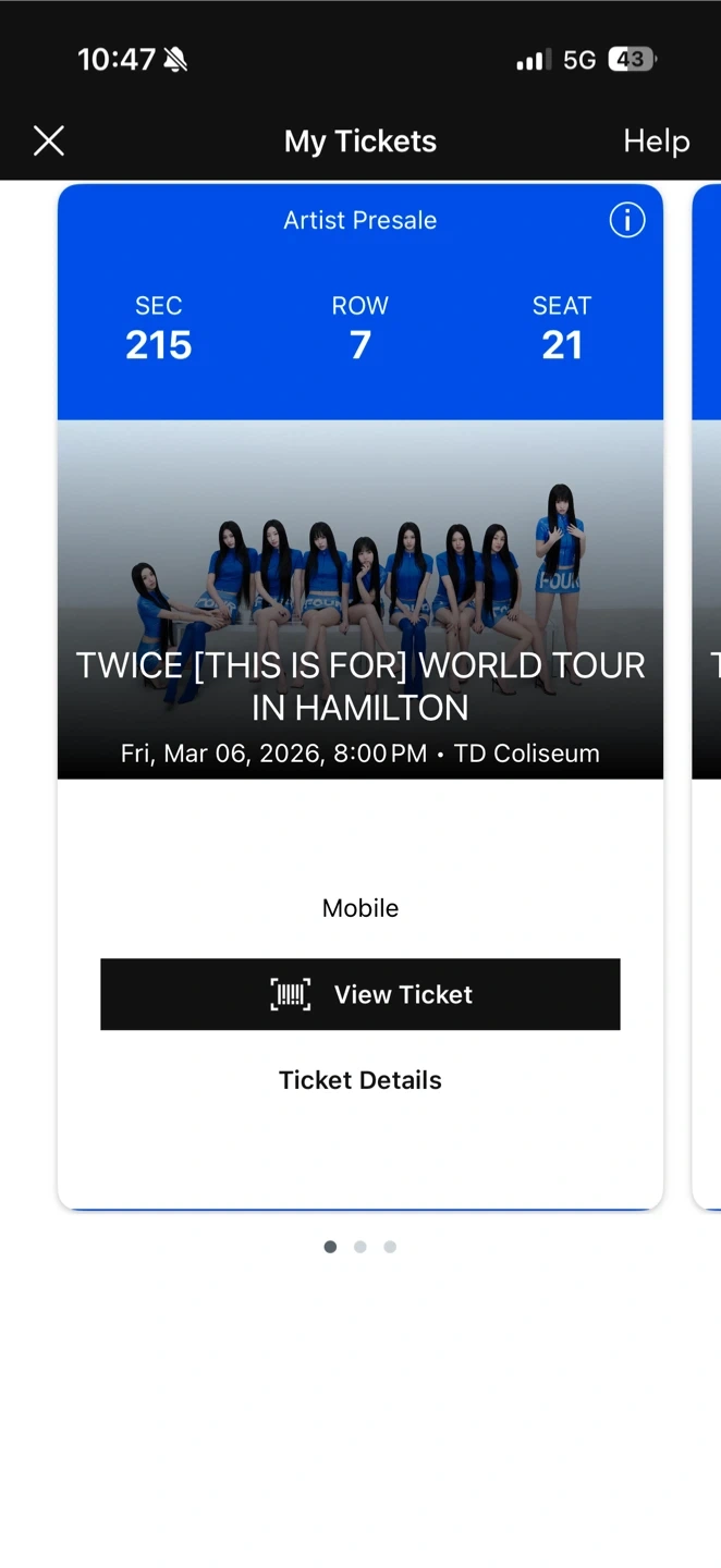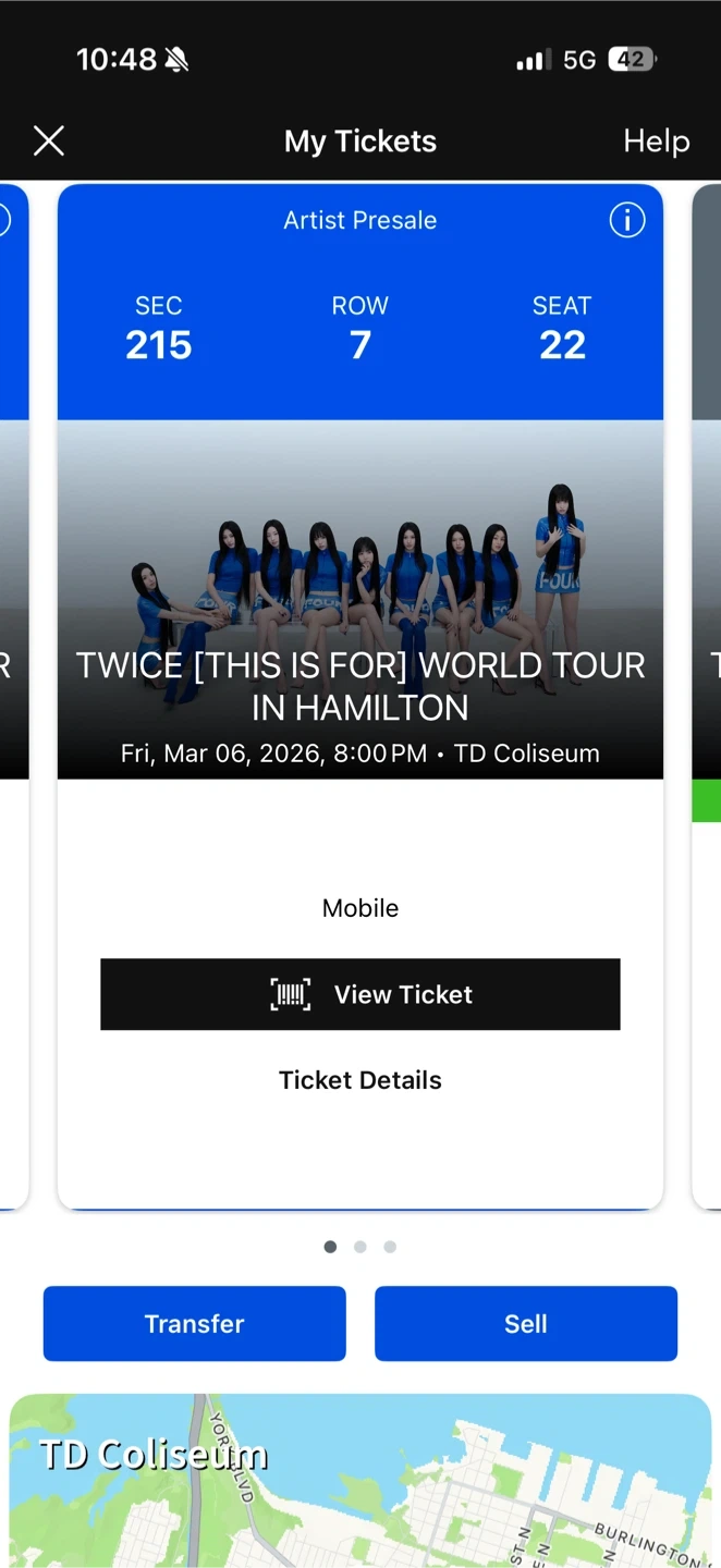 Selling two tickets to see TWICE [THIS IS FOR] World Tour in Hamilton at the TD Coliseum on Fri, March 06, 2026, at 8:00 PM!
