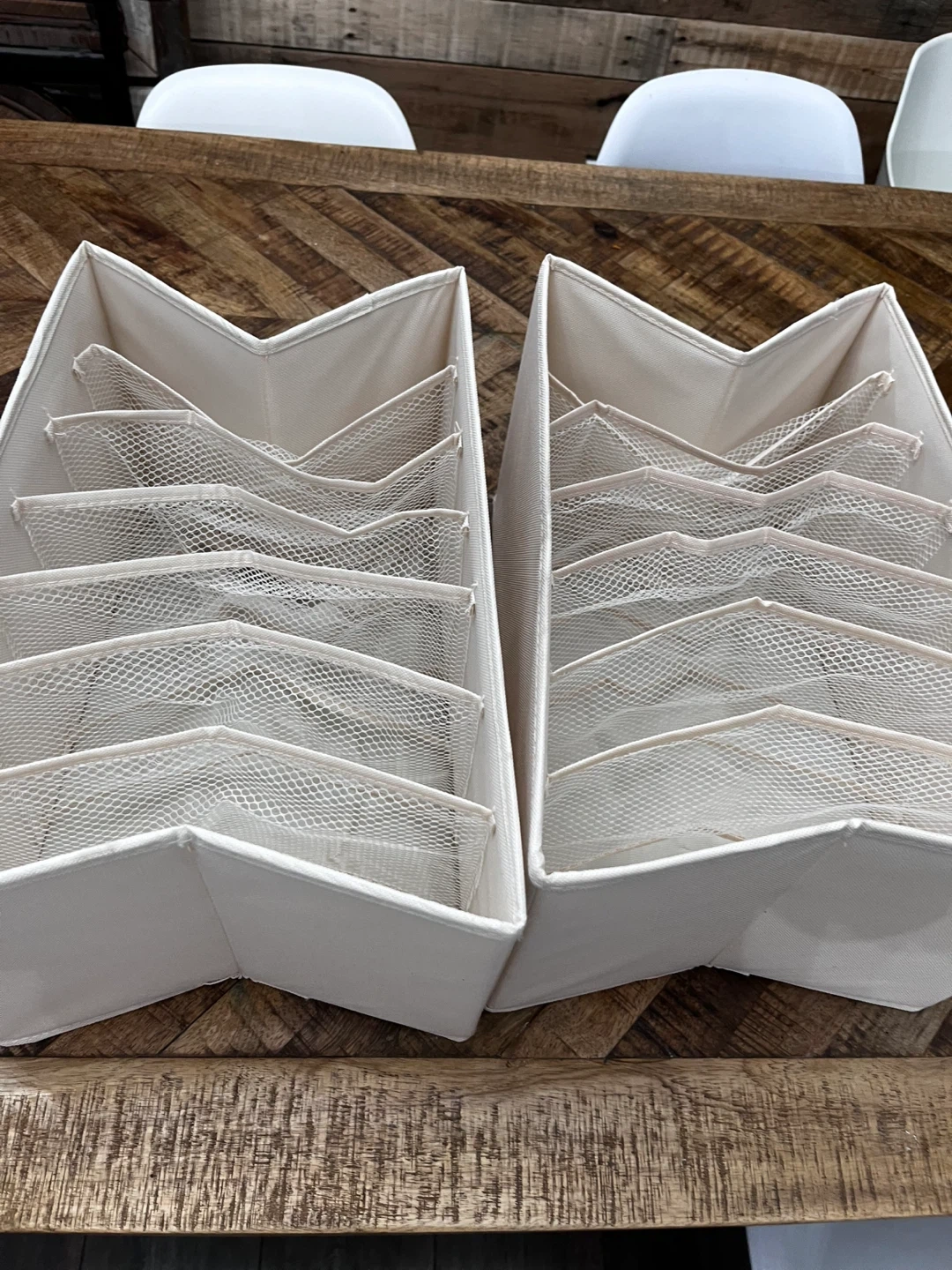 2. set of 2 beige fabric drawer organizers