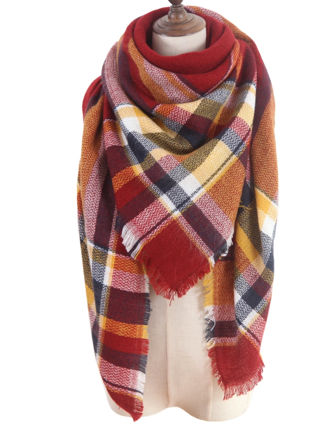 - The plaid pattern features a mix of red, yellow, white, and navy, making it super versatile.