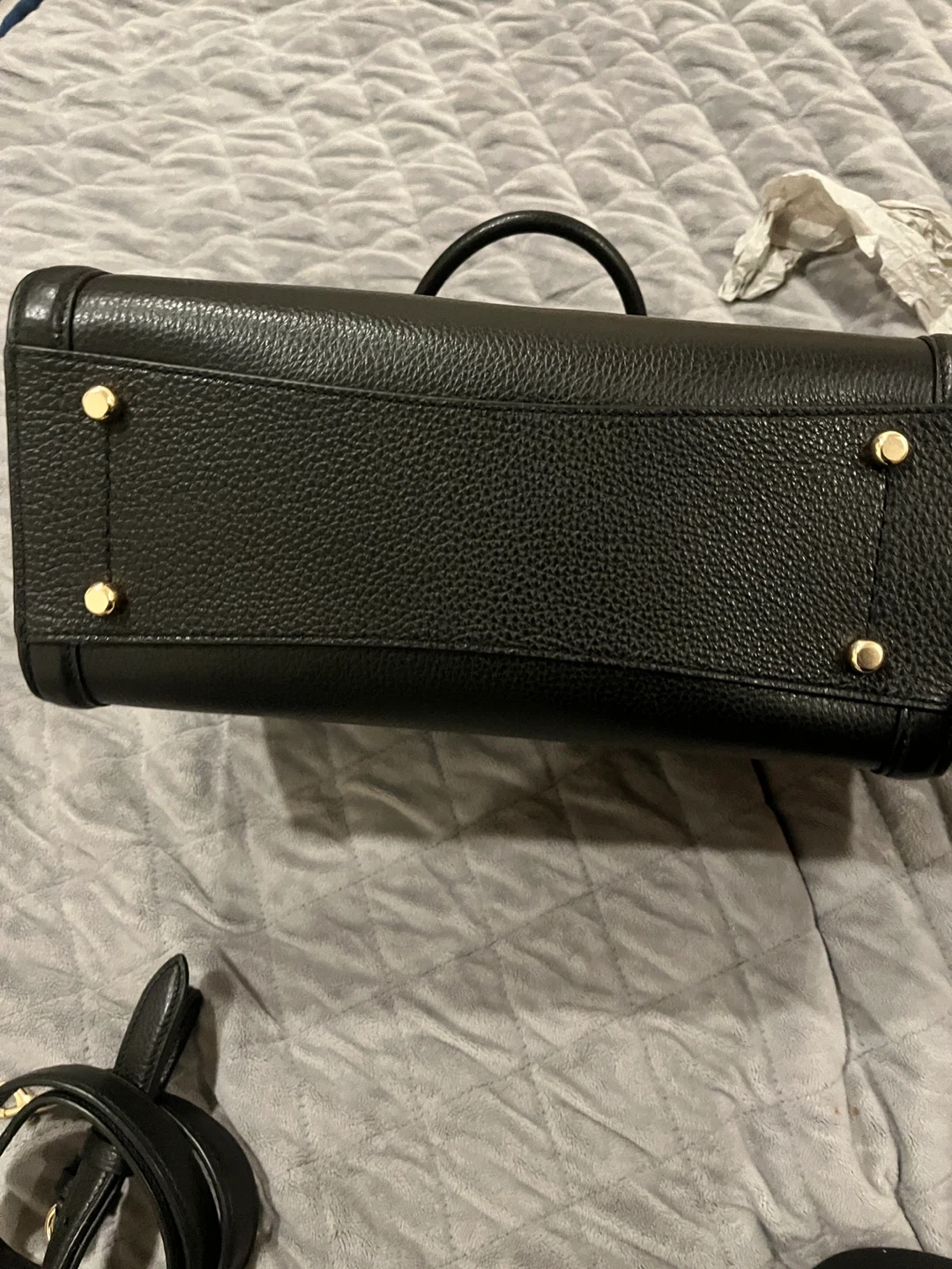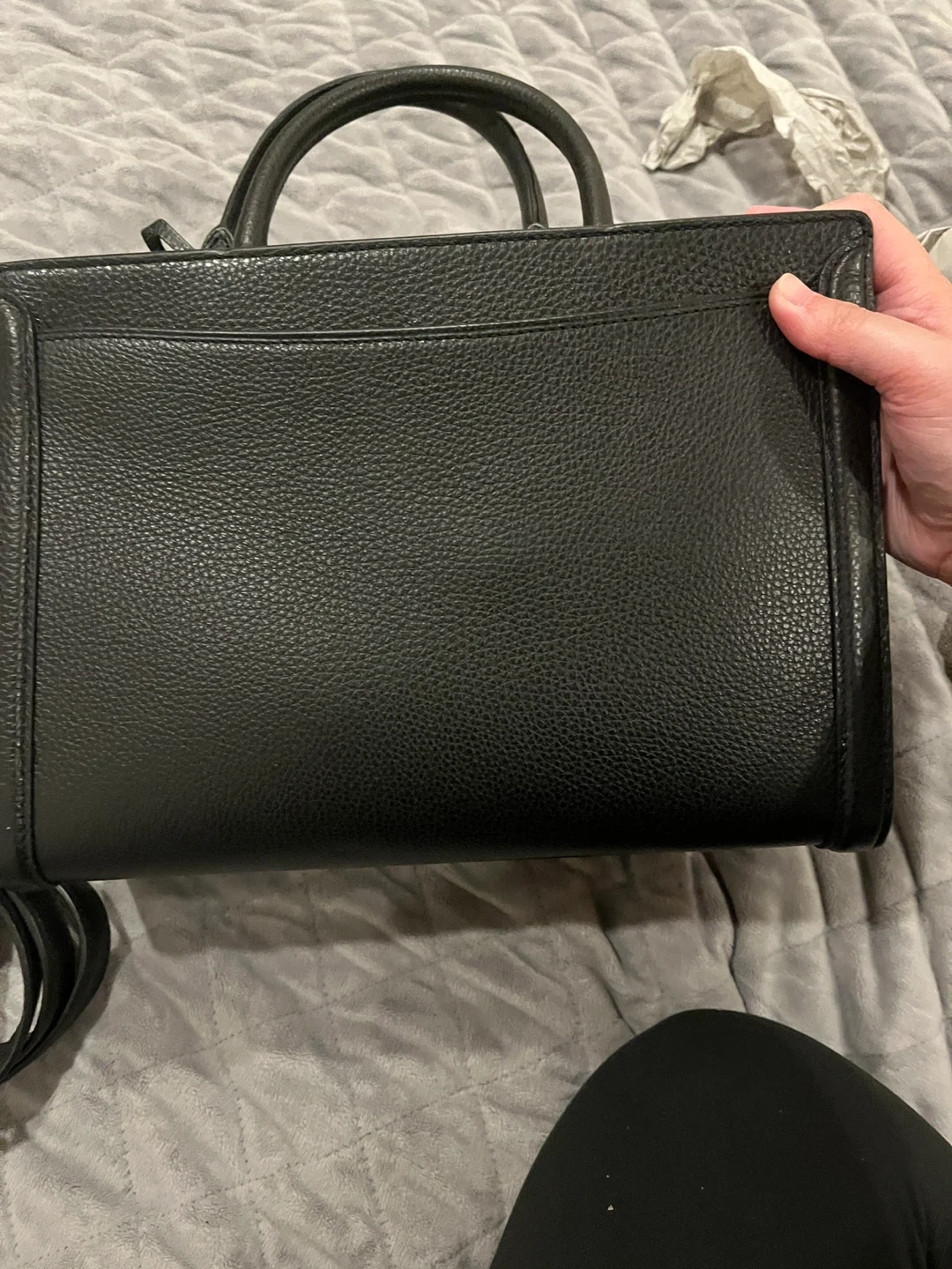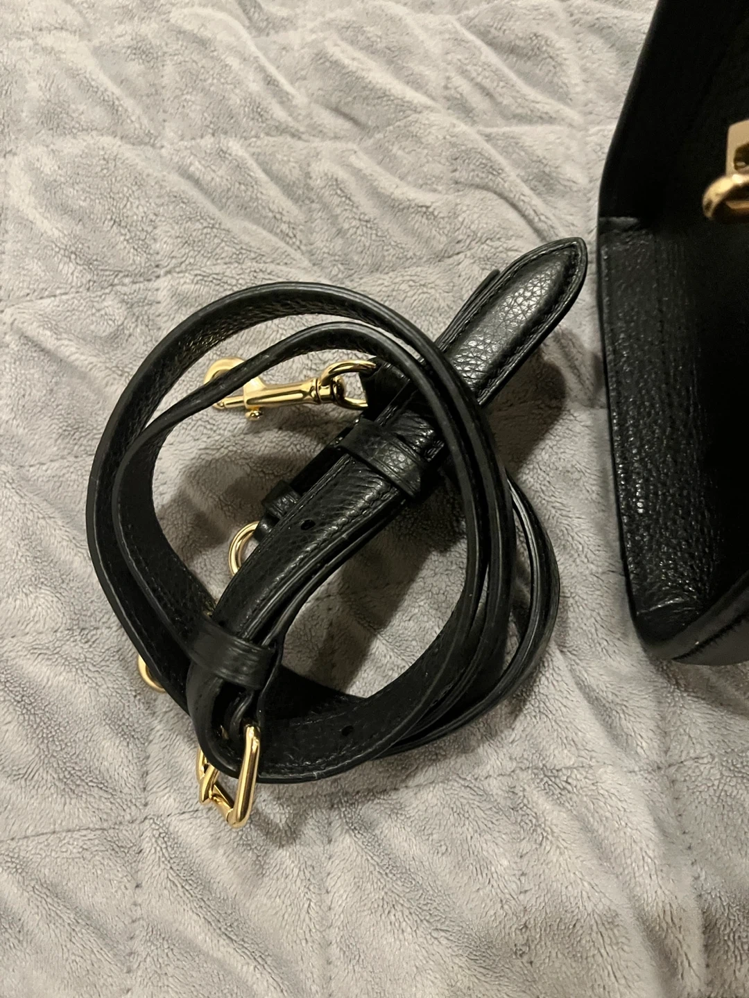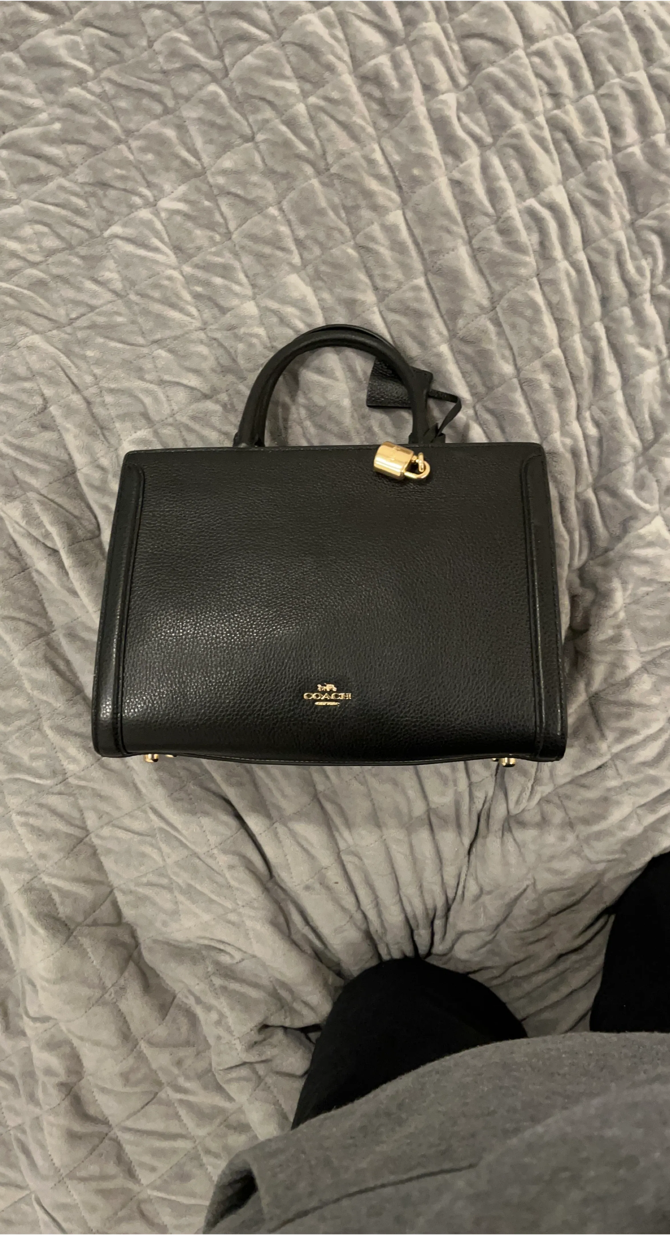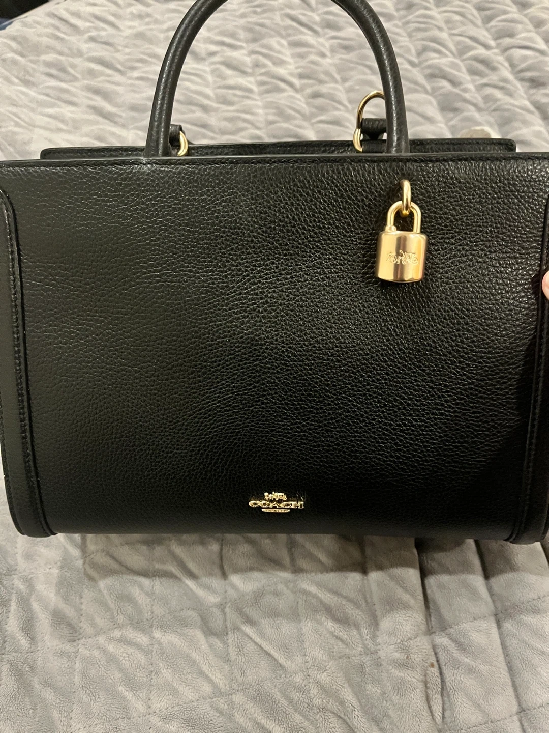 Selling a Coach black leather satchel handbag. It's in great condition and features a classic design with gold-tone hardware. Comes with an additional shoulder strap!
