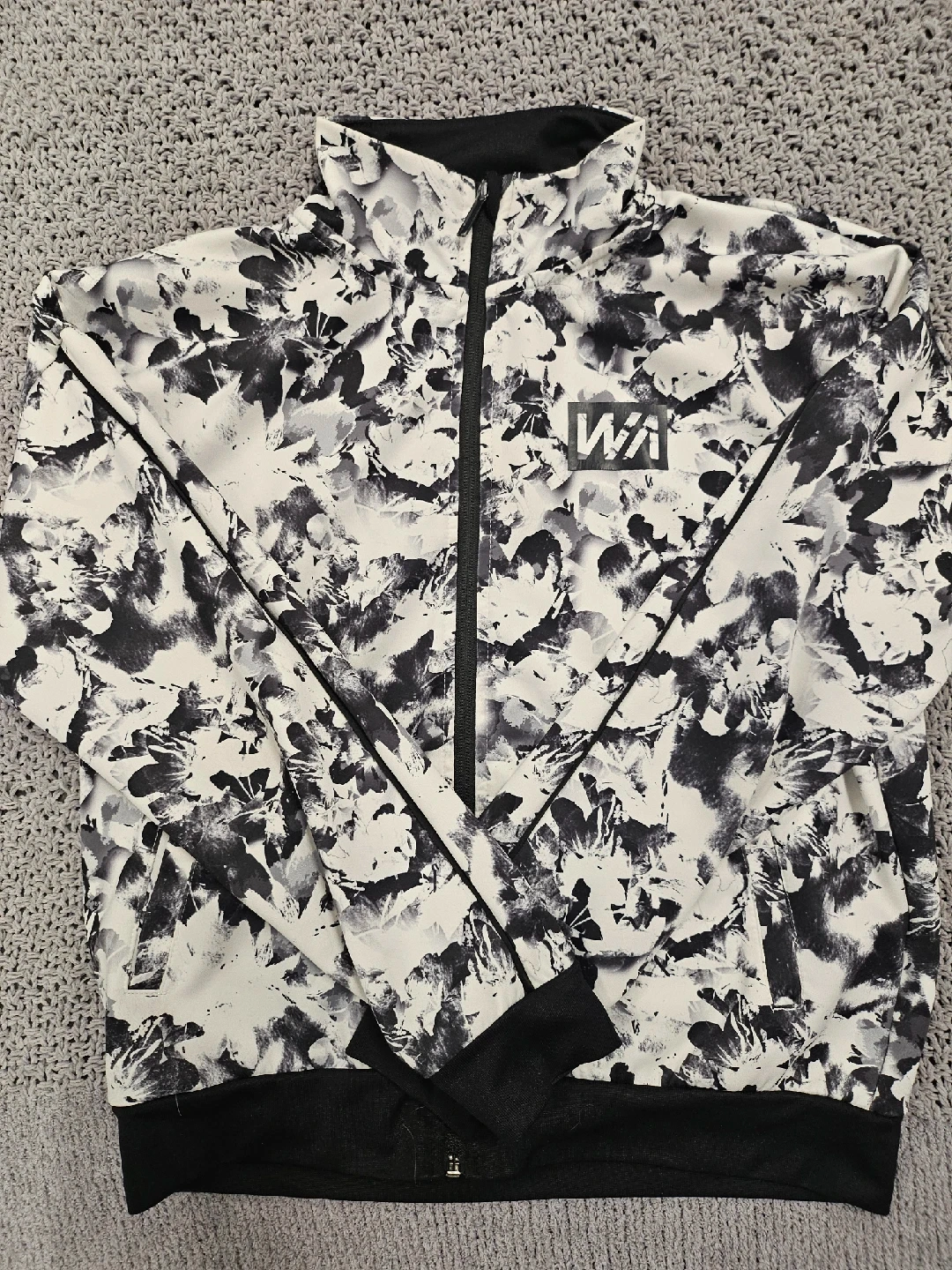 Selling a RVCA zip-up jacket with a unique floral print. It's in great condition and perfect for layering or wearing on its own. The jacket features a full zip closure and a comfortable fit. Great addition to any wardrobe!