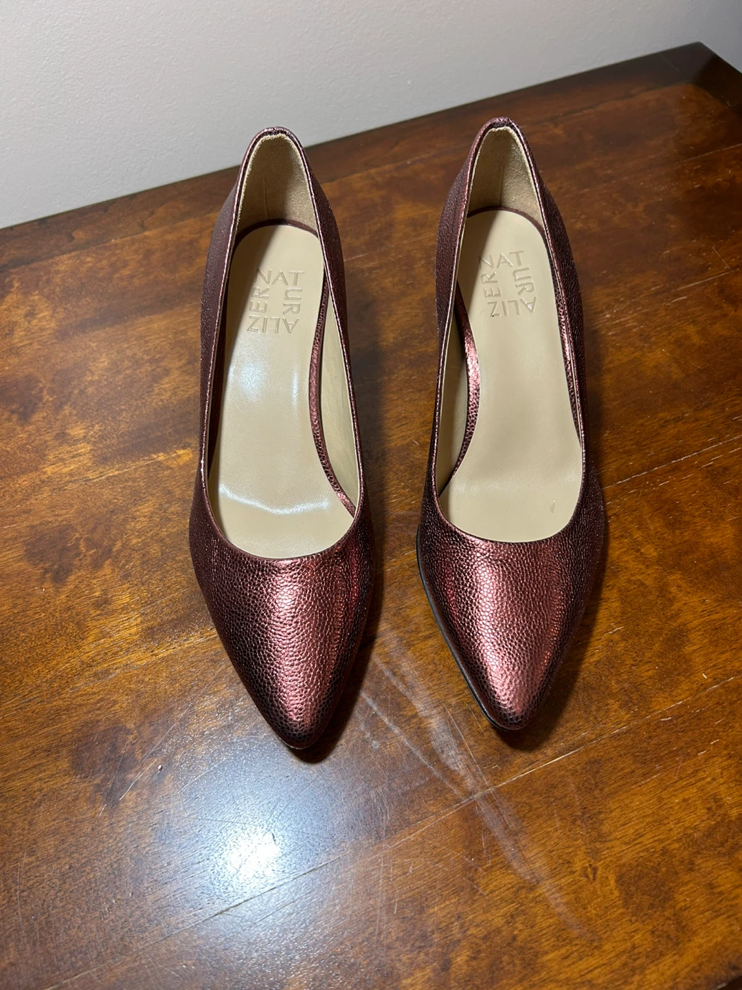 Selling a pair of Naturalizer Beverly heels in a beautiful metallic color! They are a size 6. These heels are perfect for adding a touch of elegance to any outfit