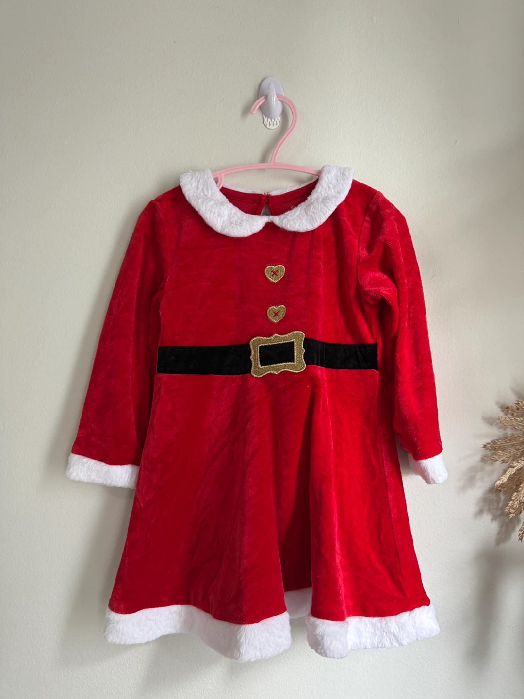 A cute red Santa dress from George in size 3T! It's made of 100% polyester, exclusive of trimming. Perfect for the holidays!
