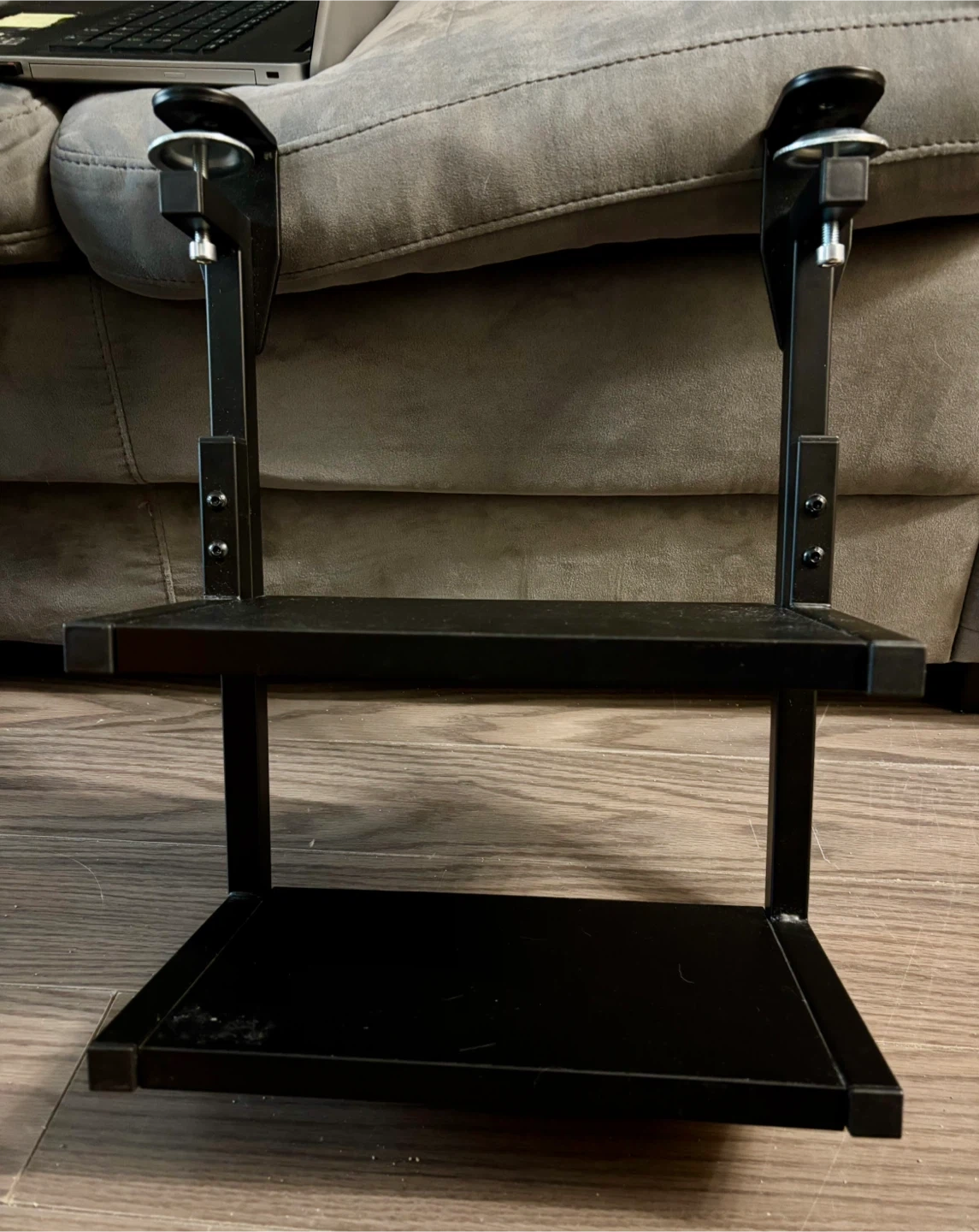 1000+This is a handy clamp-on side table, perfect for adding a little extra surface area wherever you need it! It's adjustable, so you can get the height just right. The sleek black finish will fit in with any decor