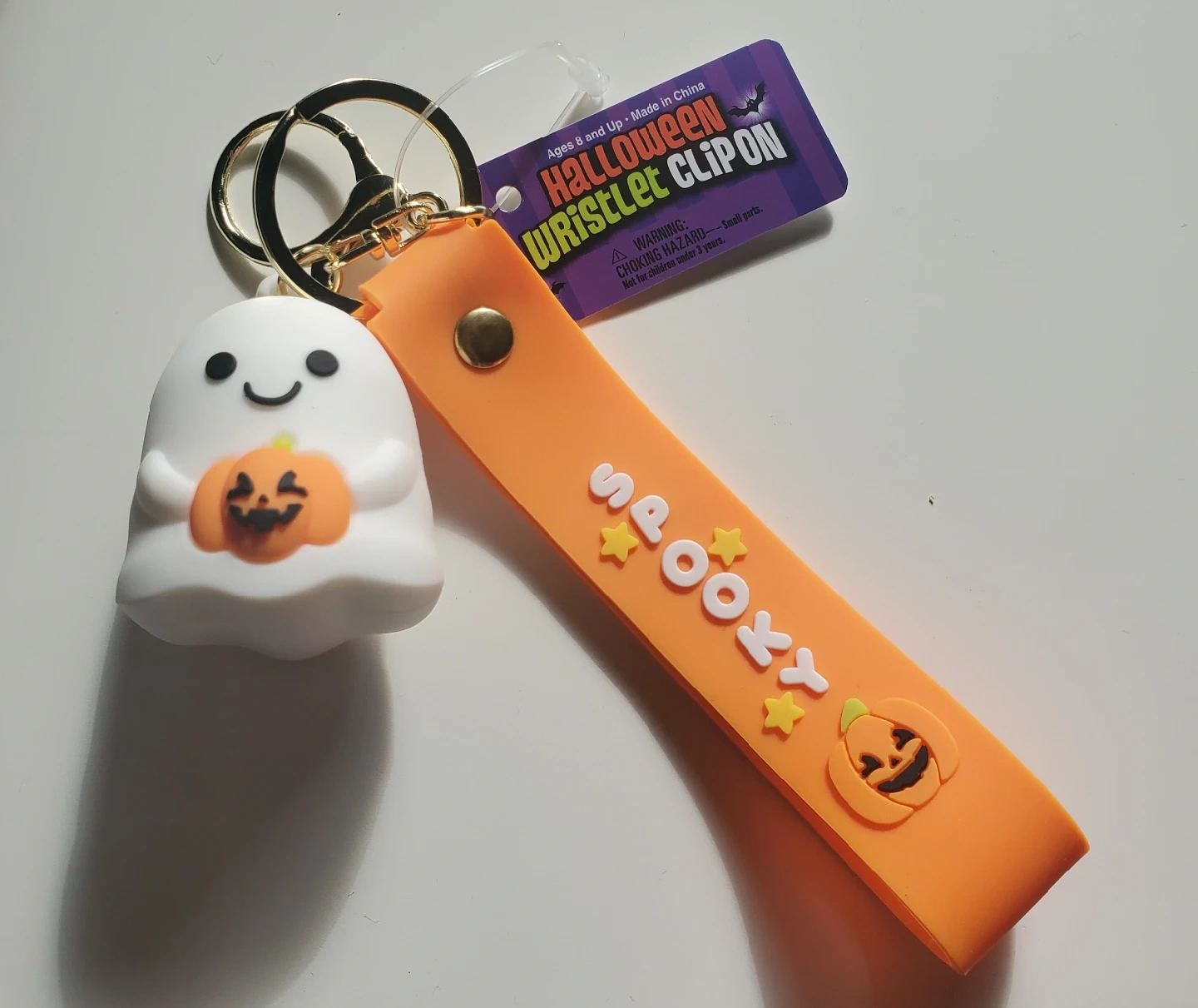 Hi, I'm selling a Halloween Ghost holding pumpkin keychain. Never used/Brand New.