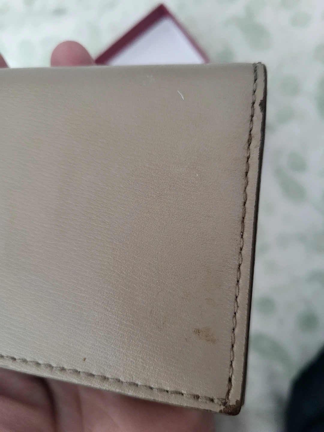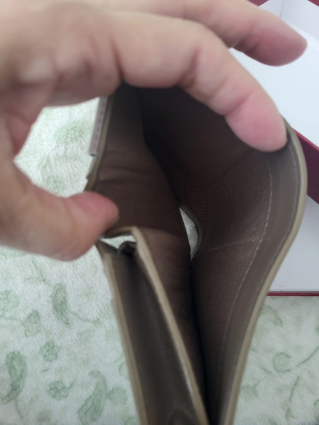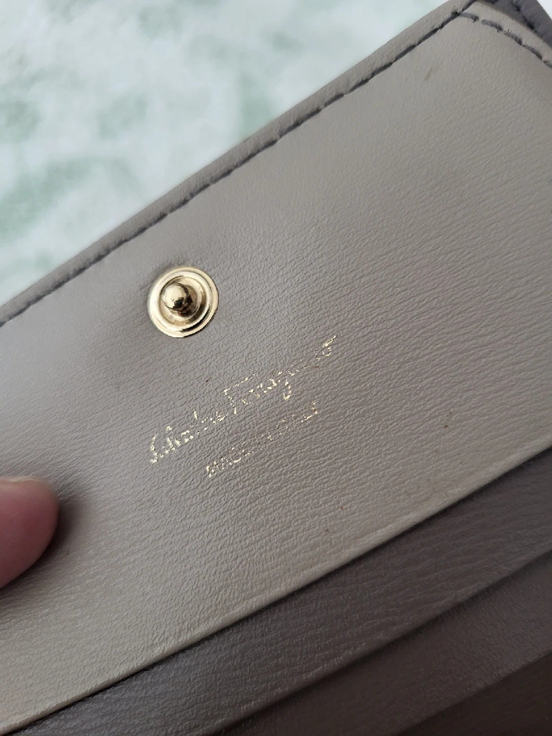Salvatore Ferragamo card holder in a beautiful taupe colour, will paper bill holder and zipped coin holder. Comes with the original box! used, preloved.. some edges have cuffs, see photos but very nice to have. authentic. originally sold for $500