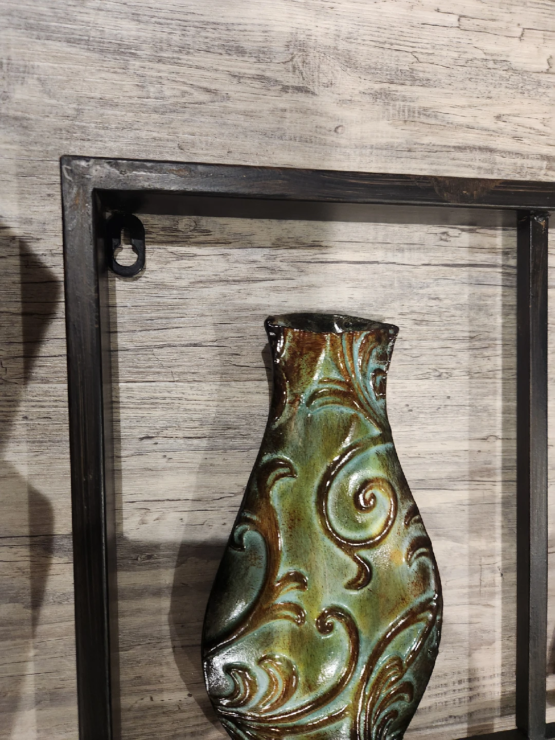 Ornate metal wall art, statement piece, neutral earthy colours brown, gold, black, green, tan - 25" w 31"