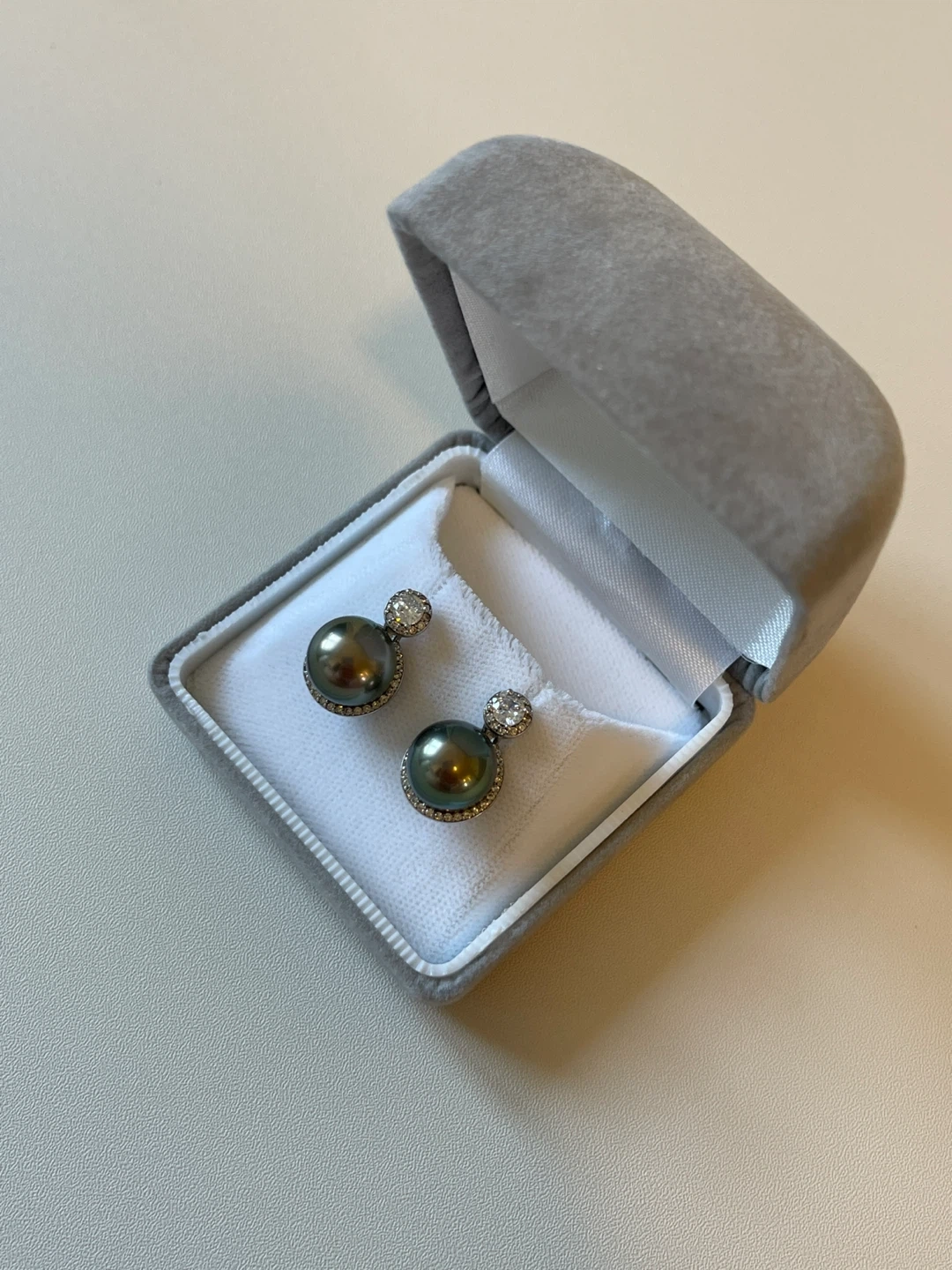 1000+Brand New Tahitian Pearl 10mm in very good lustre and vibrant green tone. Beautiful Round shape Stone is Cubic zirconia set in 925 silver Comes with decent velvet jewelry box
