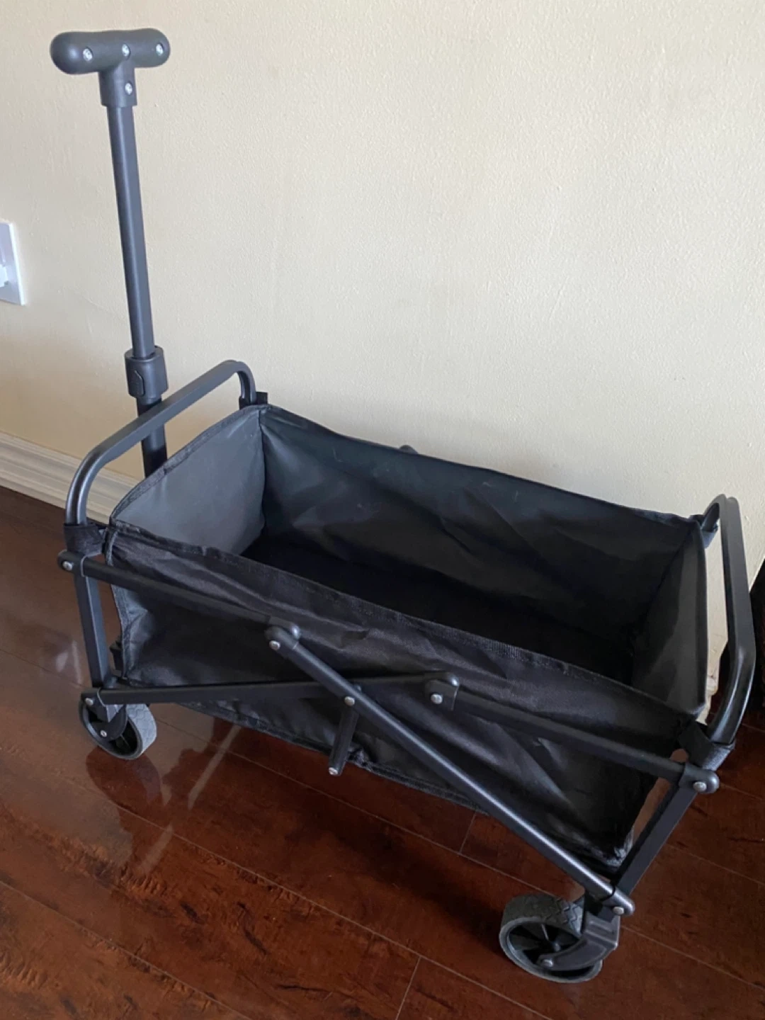 Selling a folding wagon cart in black. It's in great shape and ready for all your hauling needs! Perfect for camping, groceries, or trips to the park
