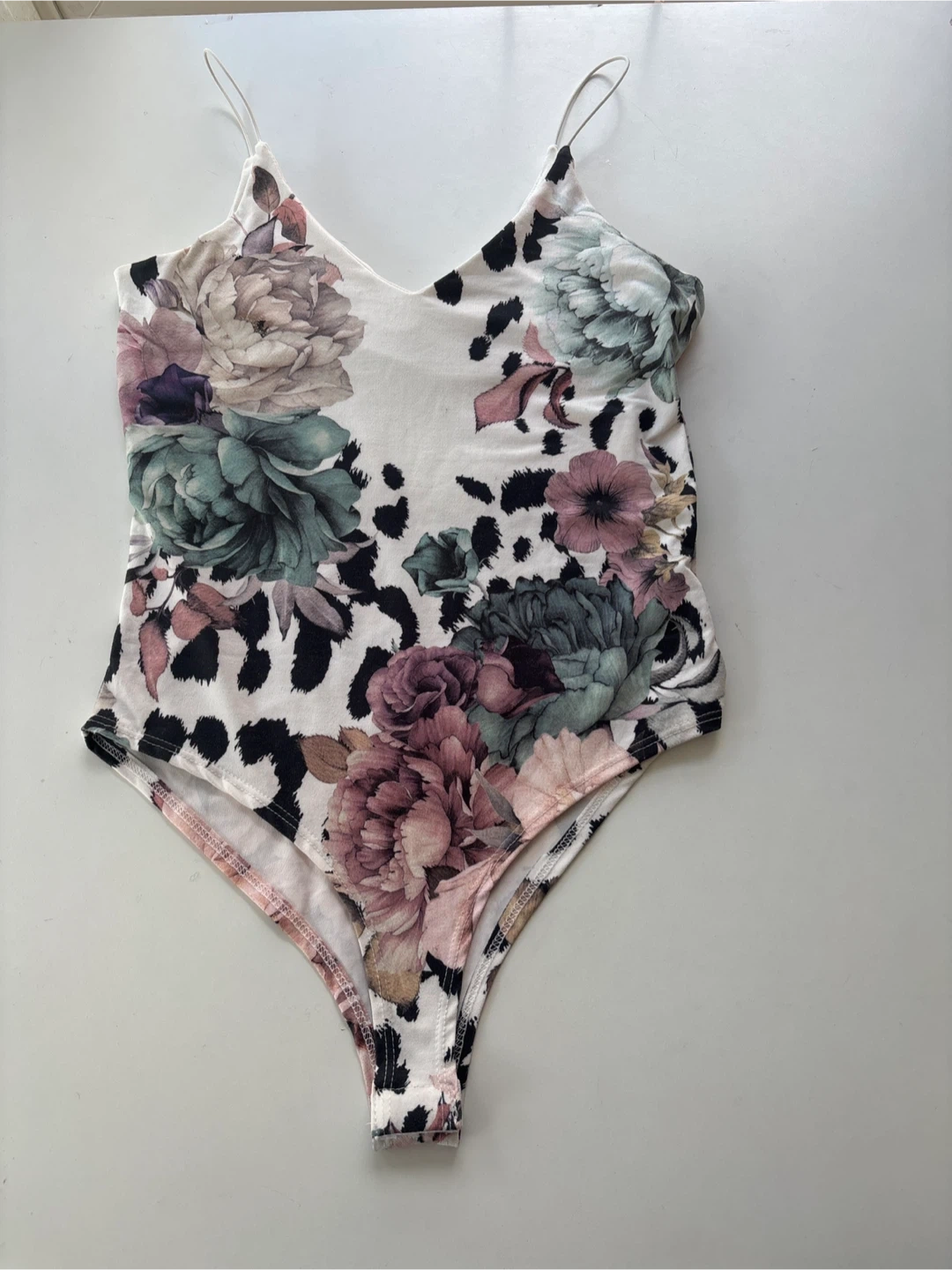 375Here's a cute Gaze bodysuit in size XS! It features a lovely floral and animal print design. Perfect for layering or wearing on its own for a stylish look