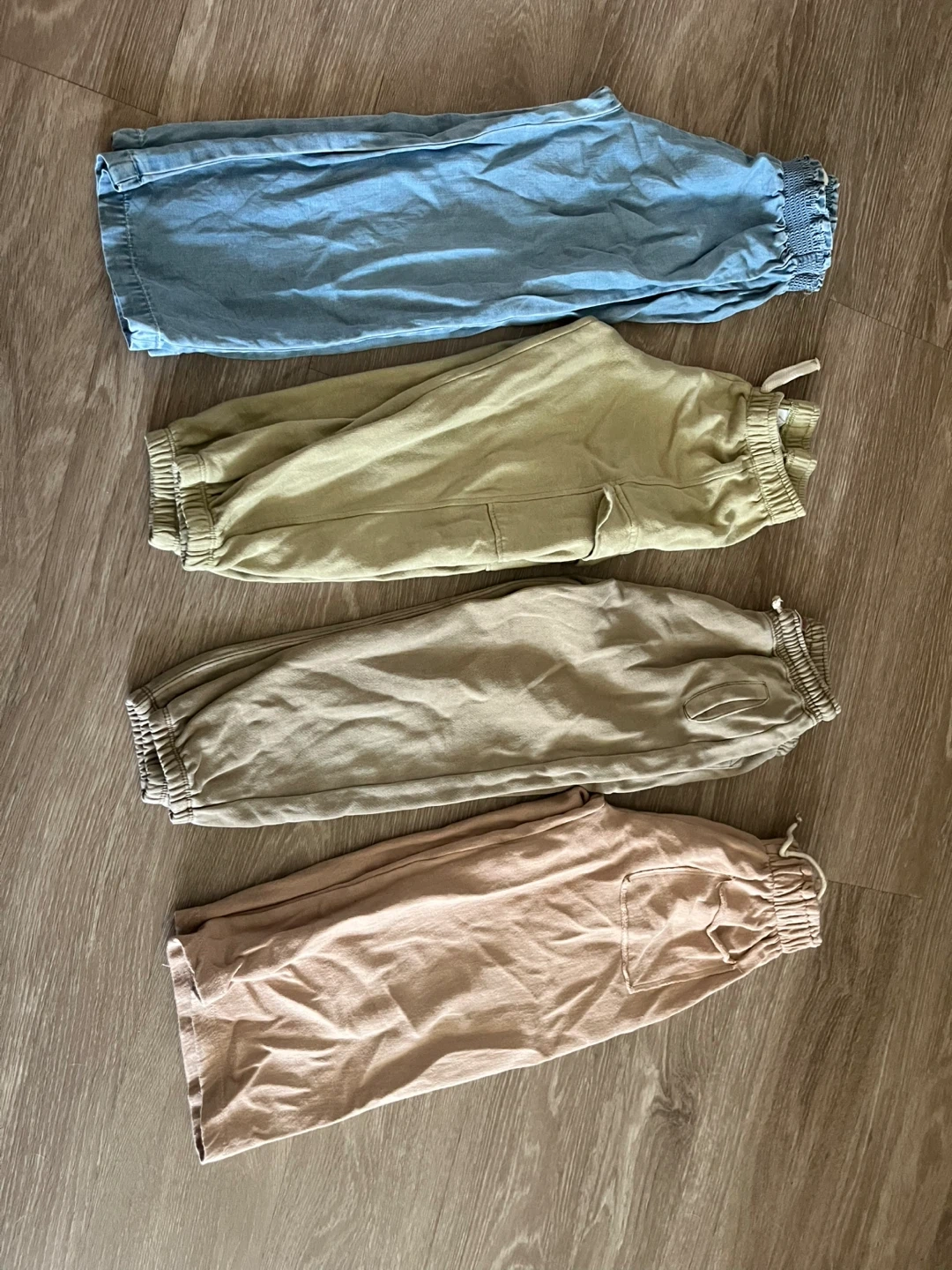 10Selling a set of jogger/ jean pants in various colours! There's a light blue, a light green, a beige, and a light pink. Great for comfy casual wear!