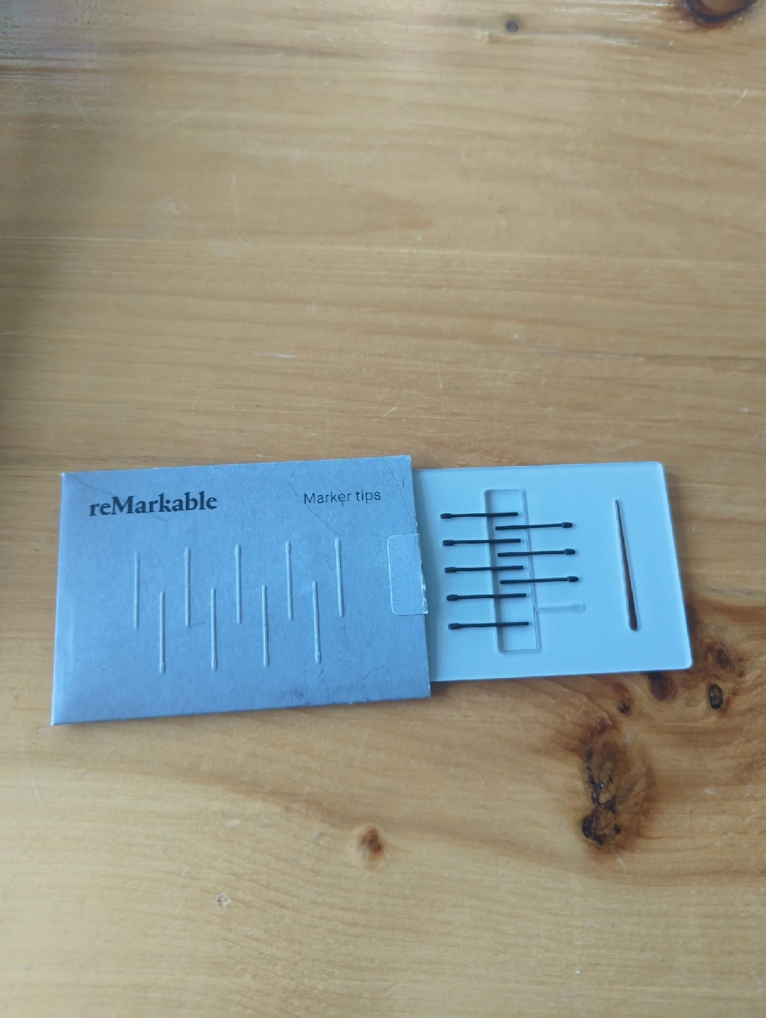 Selling a pack of reMarkable marker tips! This includes 8 spare marker tips and a marker tip removal card. They are designed by reMarkable in Norway,only used one and then sold my remarkable. Get these spare nibs to keep your reMarkable writing experience smooth! Only available for pick up.