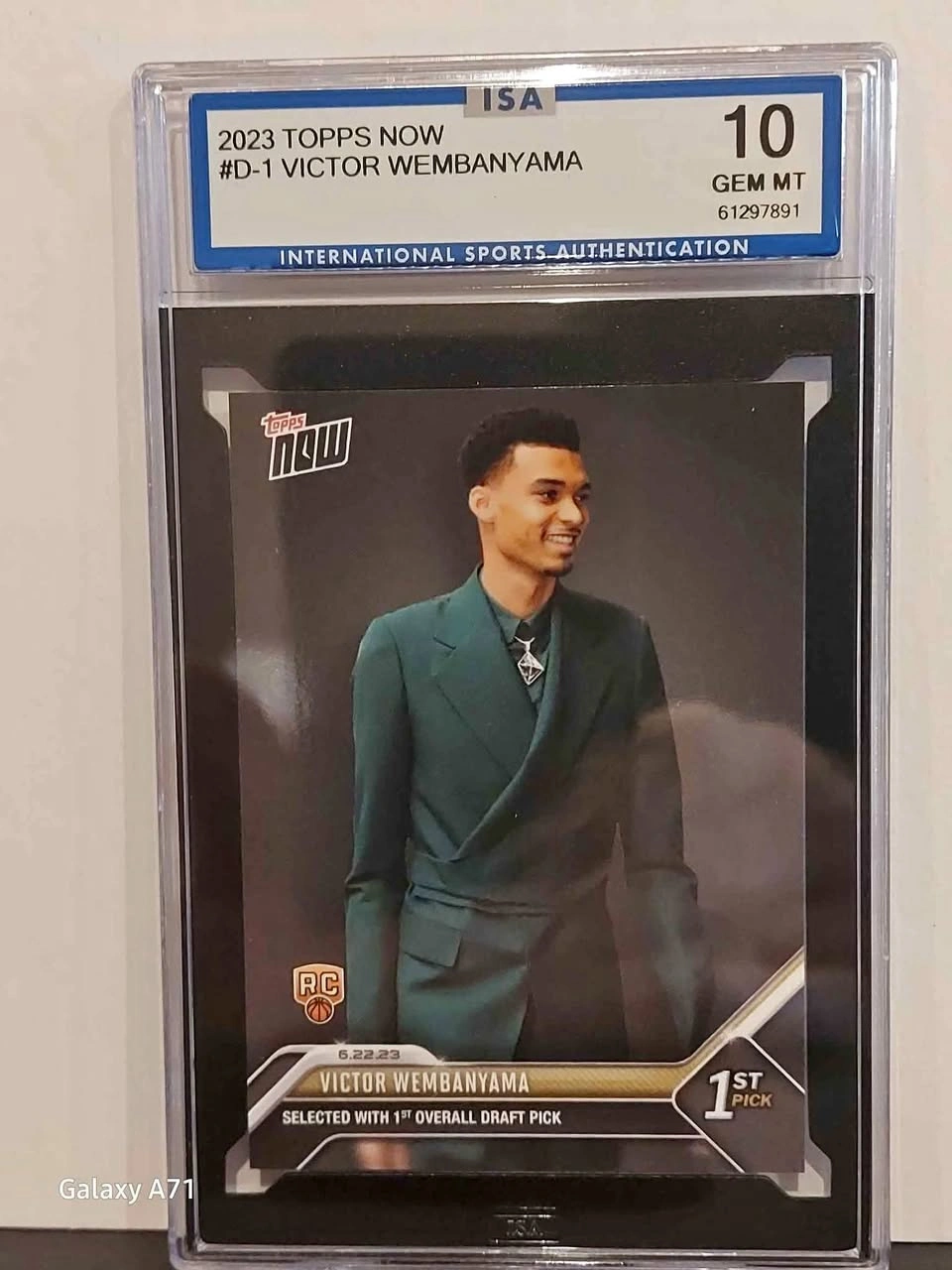 This is Victor's "Draft" rookie card from the 2023 Topps Now series. A good-looking card and the first ever from Topps Now, as well as one of the very first cards ever for Wemby so will hold more collector's value.