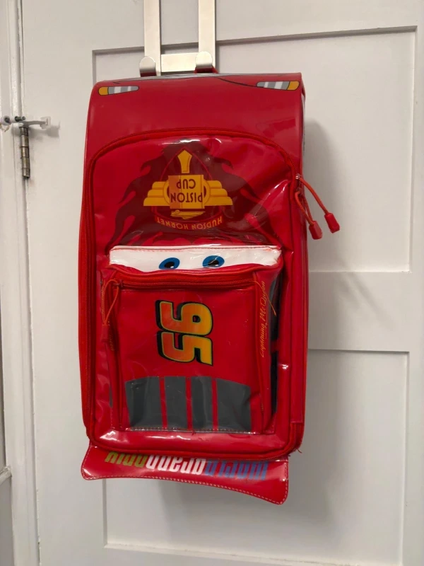 Selling a Disney Pixar Cars rolling luggage! It's red and features Lightning McQueen. Perfect for your little racer's next trip! Last slide shows some wears.