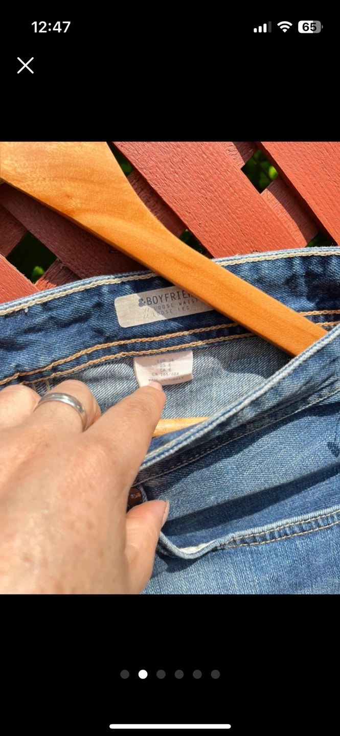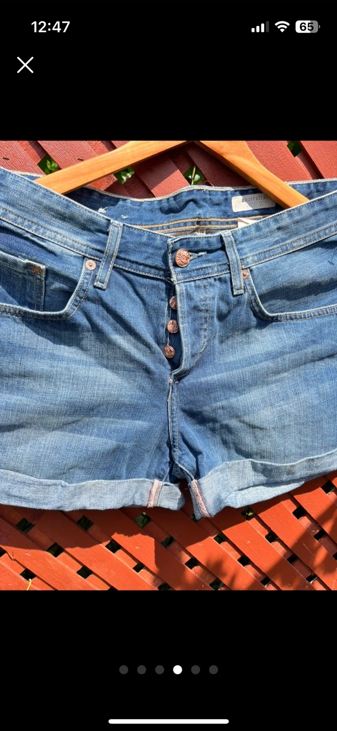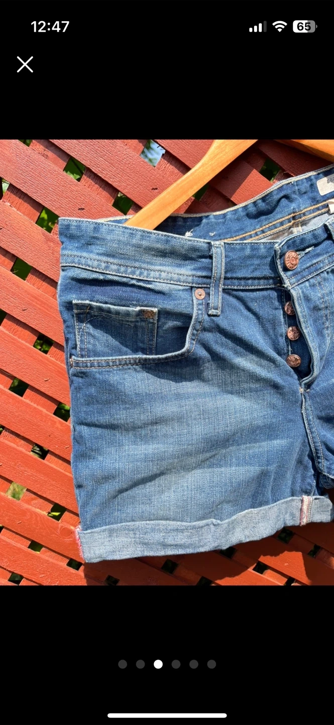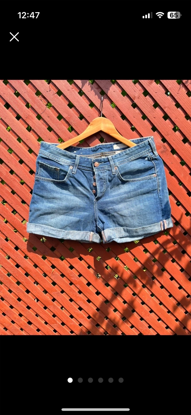 612Selling a pair of Levi's denim shorts in a size 26. They're the 'Boyfriend' style and are in great condition! The shorts are a classic blue denim wash with a button-fly closure. Perfect for casual summer days