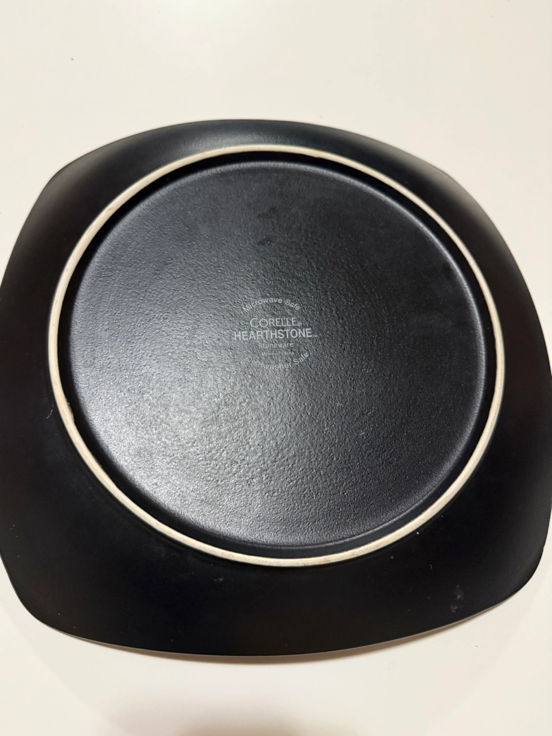 I'm selling a Corelle Hearthstone square plate in great condition. It's a stylish addition to any table setting. The plate is a deep red colour with a black rim. Perfect for everyday use or special occasions! Microwave safe