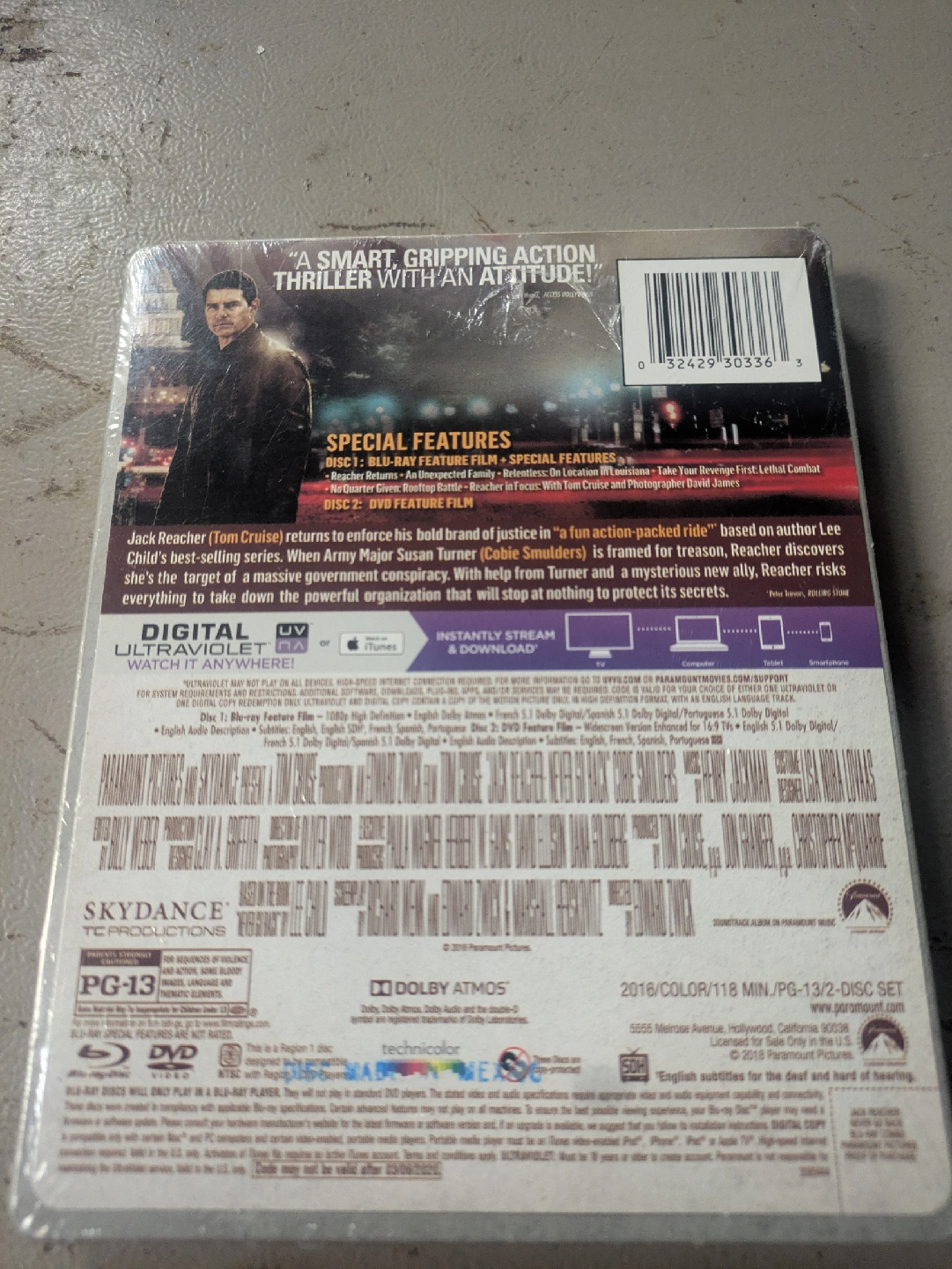 Selling a brand new, sealed copy of Jack Reacher: Never Go Back on Blu-ray, DVD, and Digital! This set includes special features and digital access for watching anywhere. A smart, gripping action thriller!