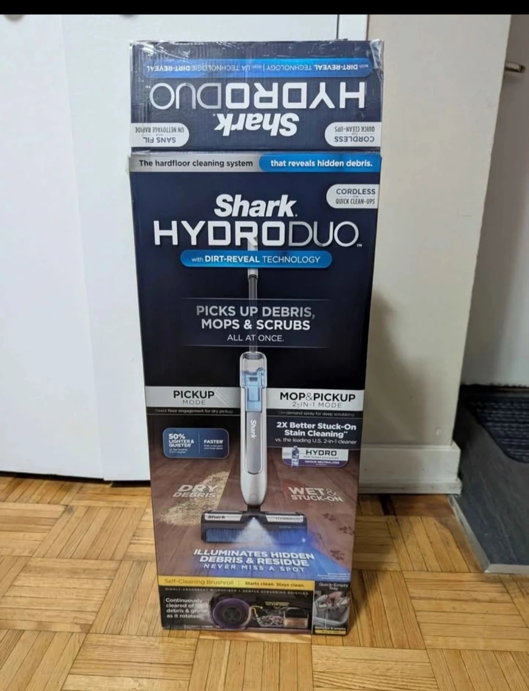 Keep your hard floors sparkling with this Shark HYDRODUO cordless hard floor cleaning system! It picks up debris, mops, and scrubs all at once. The DIRT-REVEAL Technology illuminates hidden debris, so you never miss a spot. It also features 2X better stuck-on stain cleaning vs. Shark VACMOP. Comes with the charging dock.