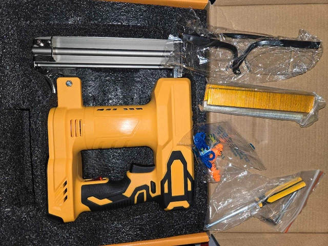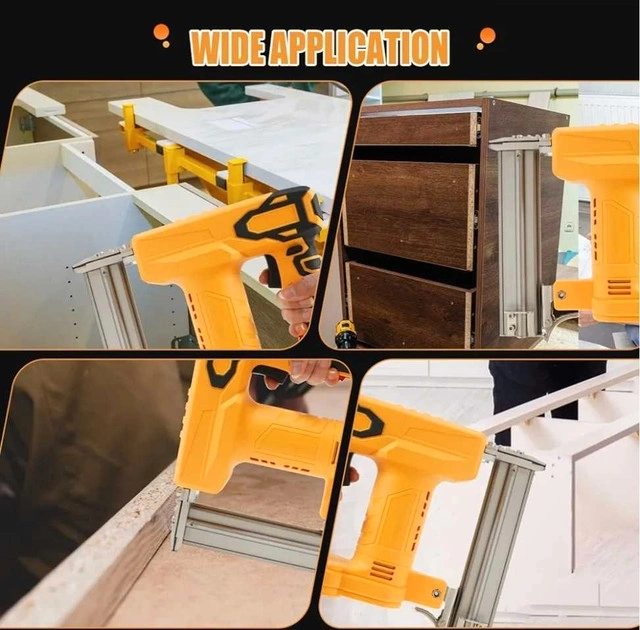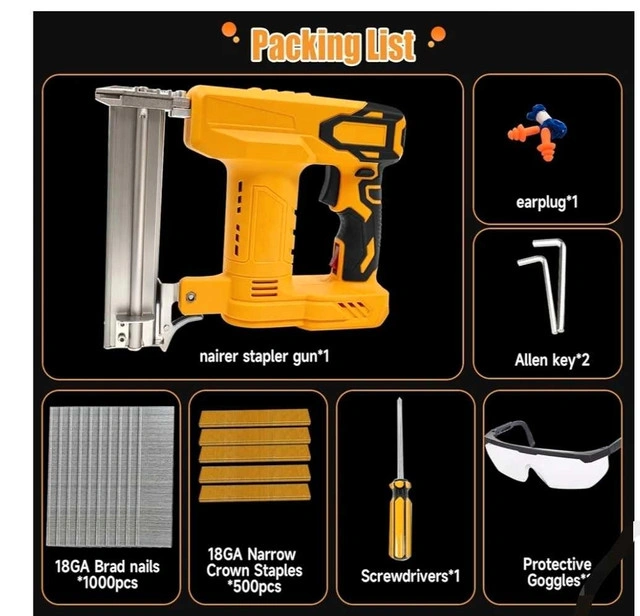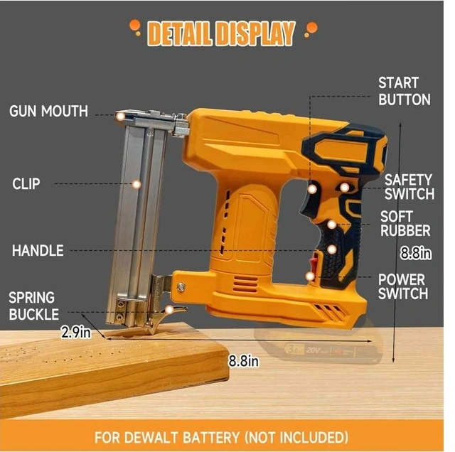 48Compatible with a wide range of De-walt 20V MAX Battery/MAKI-TA 18V BATTERY models, no need to purchase additional batteries, easy to integrate into existing tool sets. Equipped with a brushless motor, it provides efficient and stable power output, prolonging the life of the tool and reducing the frequency of maintenance. Provides single shot and continuous contact firing modes, users can choose flexibly according to the specific application scenarios, to meet various operational requirements. Quick-release magazine design allows for quick reloading with a maximum capacity of up to 100 nails, significantly improving work efficiency. Includes a convenient belt hook for easy carrying and storage. The safety nose pin design must be fully pressed against the work surface to fire, effectively preventing accidental discharge and ensuring safe use. In addition, the impressive firing speed of up to 2-3 nails per second further enhances work efficiency.