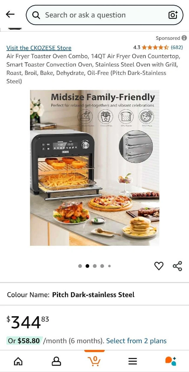 48Air Fryer Toaster Oven Combo, 14QT Air Fryer Oven Countertop, Smart Toaster Convection Oven, Stainless Steel Oven with Grill, Roast, Broil, Bake, Dehydrate, Oil-Free (Pitch Dark-Stainless Steel) For Sale By: Owner