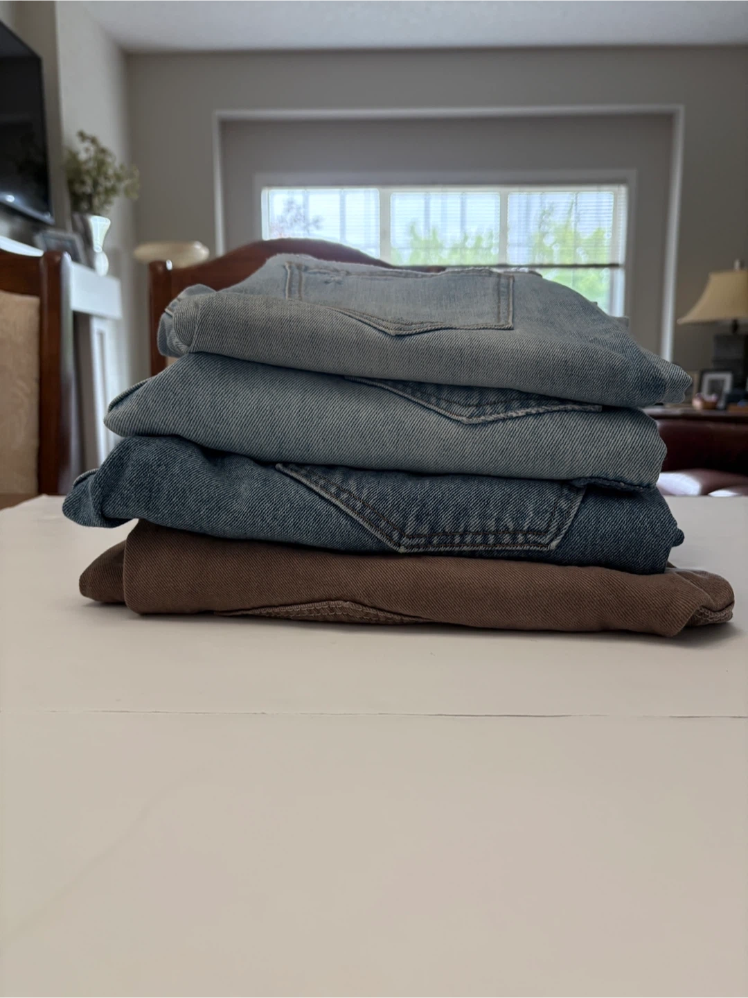 Selling gently used jeans! There's a mix of BDG and Levi's jeans in various sizes and styles. All are in good condition with some signs of wear, like frayed hems on some pairs. A great way to stock up on some denim! $10 each