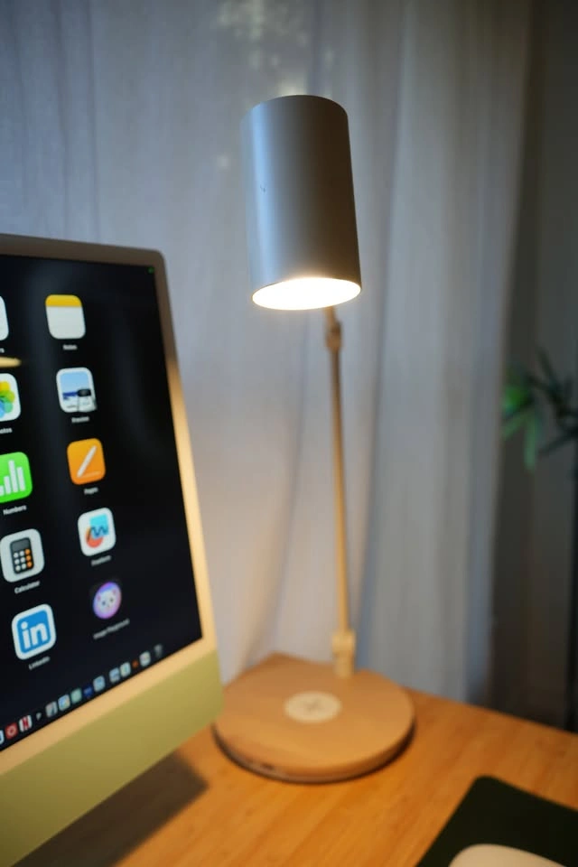 Modern IKEA lamp with built-in wireless charging pad — works perfectly with all Qi-enabled phones, earbuds, and smart accessories. Provides warm ambient light while charging your devices, no messy cables needed.