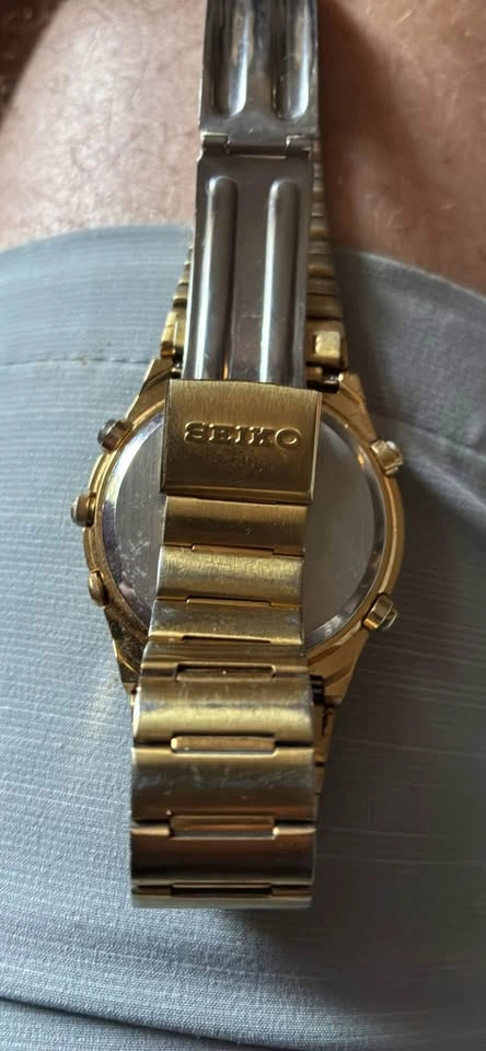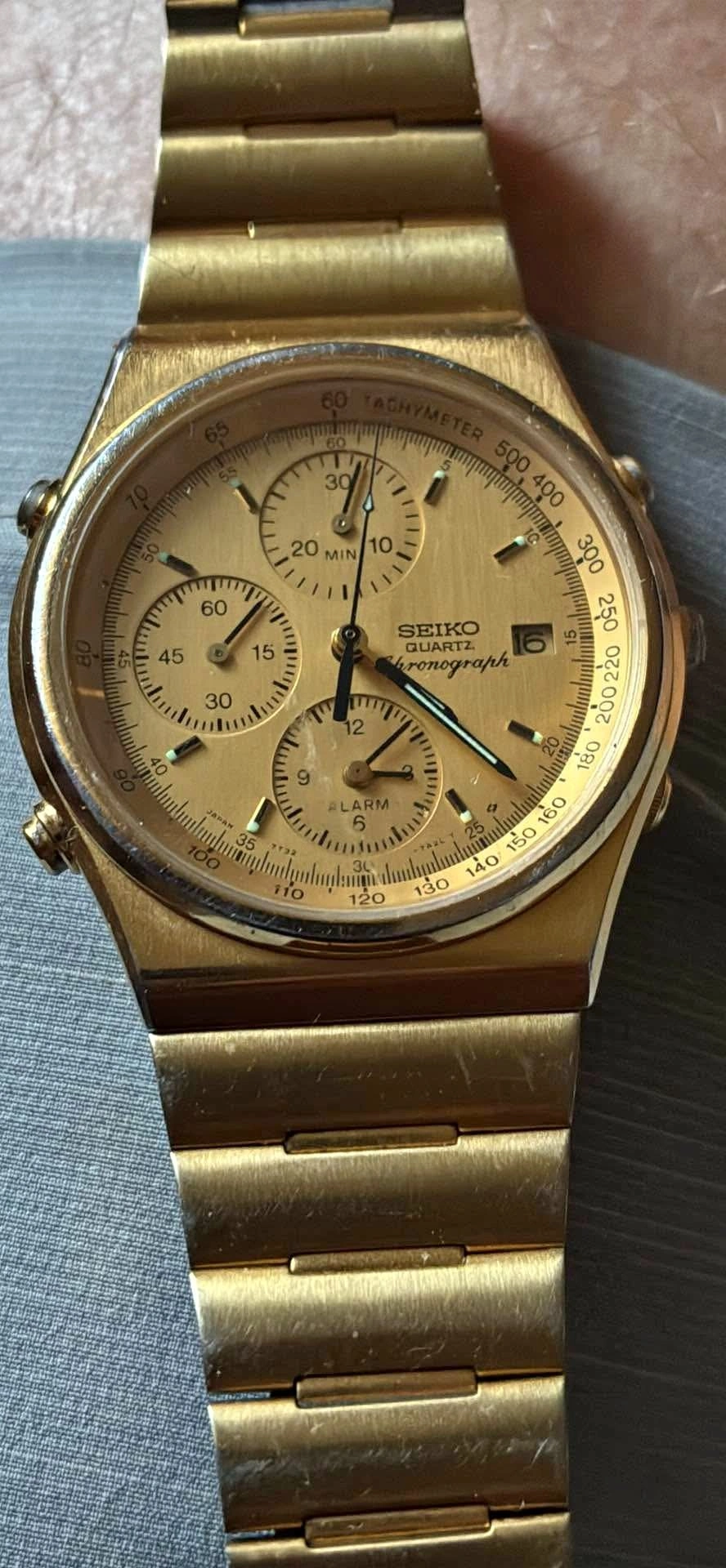 65gold on gold vintage seiko with integrated bracelet nice condition new battery beautiful watch fits a 7 1/2 wrist or smaller