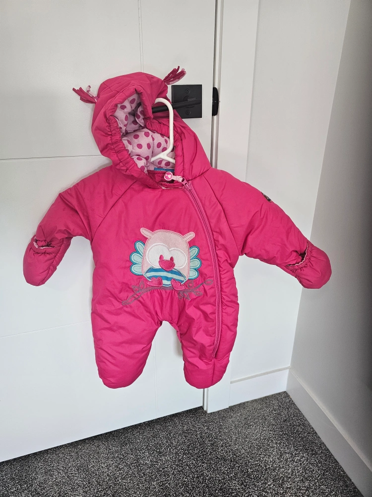 I have a Baby Gap snowsuit in pink, size 3-6 months. It's in great condition and ready for the winter season!