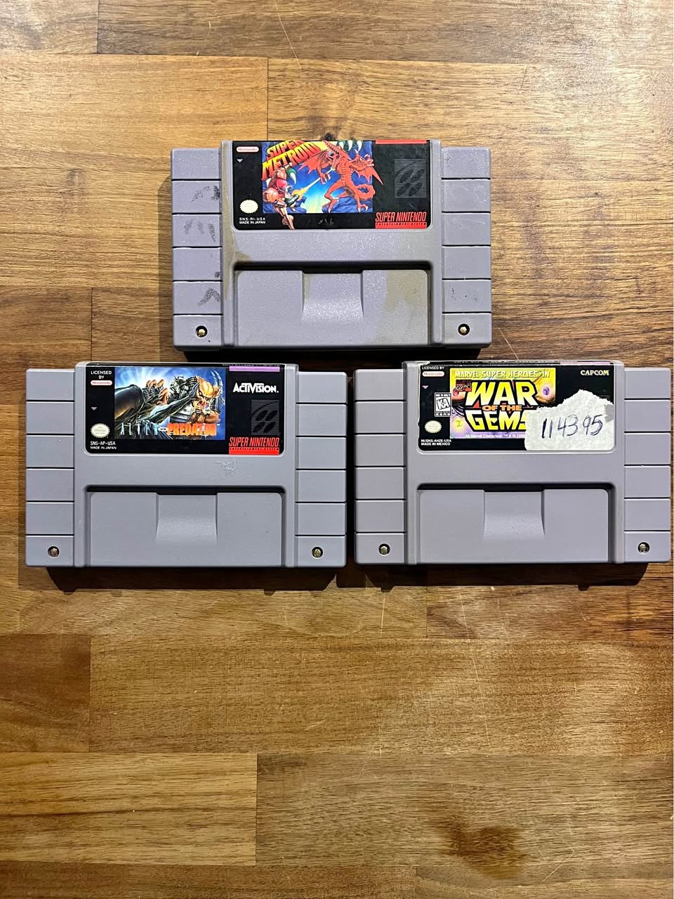Marvel & Super Metroid were previous rental store copies and have some wear but work fine.