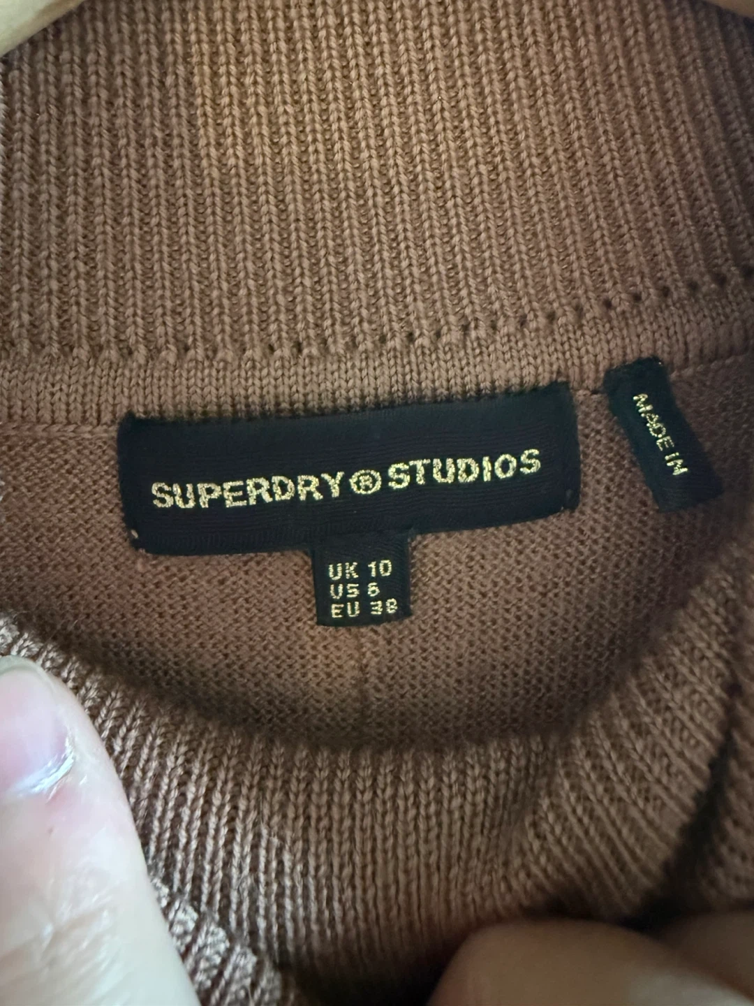 Selling a Superdry Studios turtleneck sleeveless top in a lovely brown colour! It's a size US 6. Perfect for layering or wearing on its own