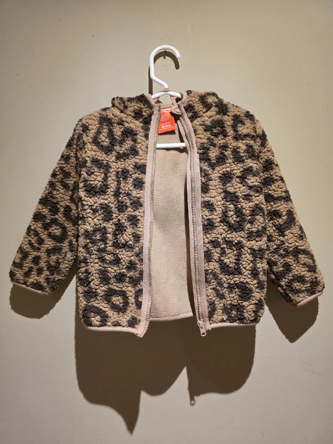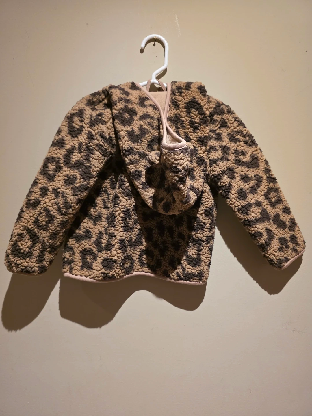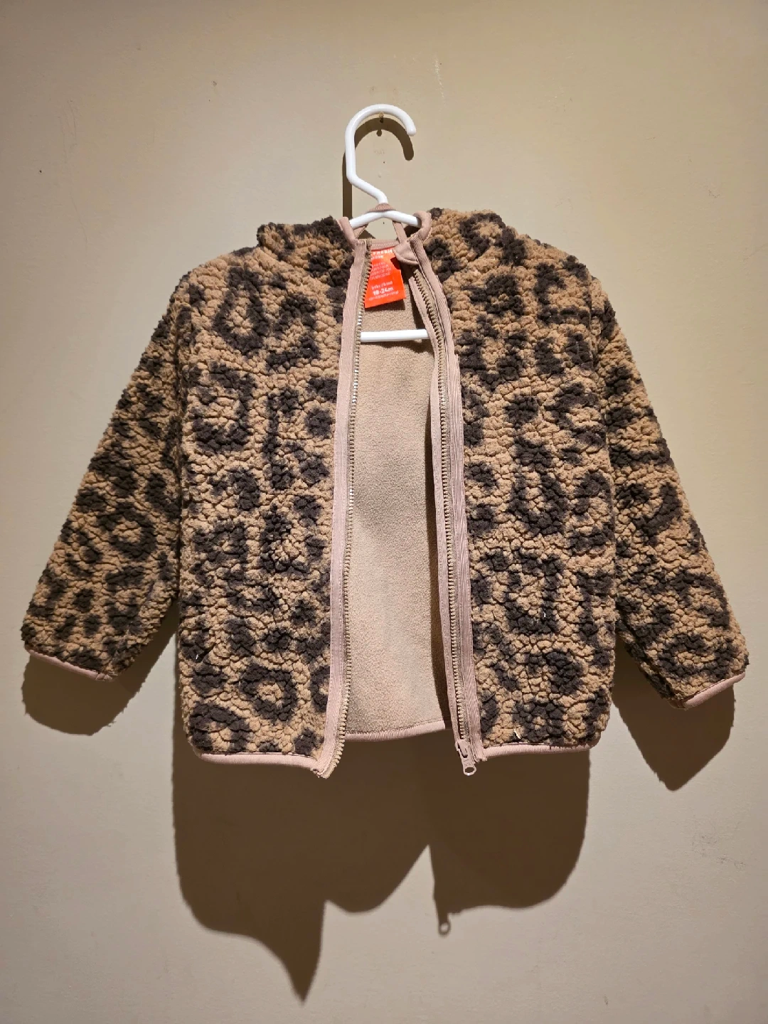 This adorable Cat & Jack fleece jacket is perfect for keeping your little one warm! It features a fun leopard print and cozy sherpa material. The size is 18-24 months, making it ideal for toddlers. It's in great condition and ready for a new home!