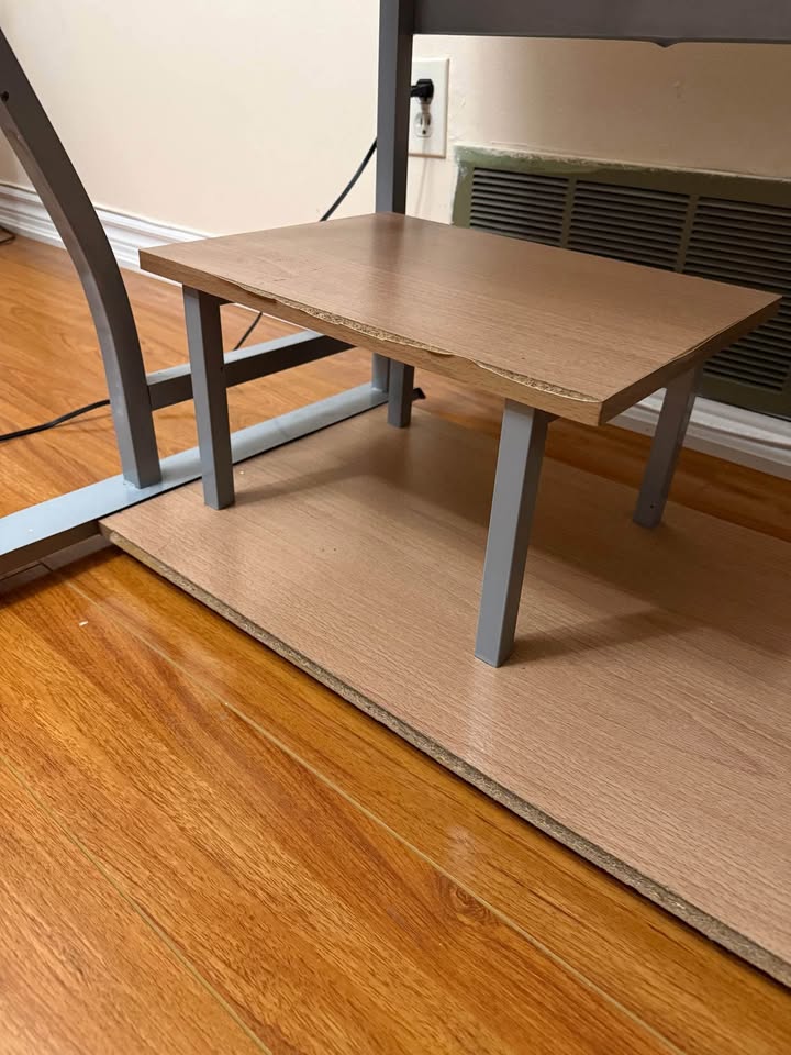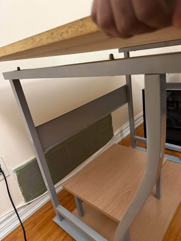 The tabletop has detached loose on one side from the metal frame but it’s not wobbly and can be used normally.