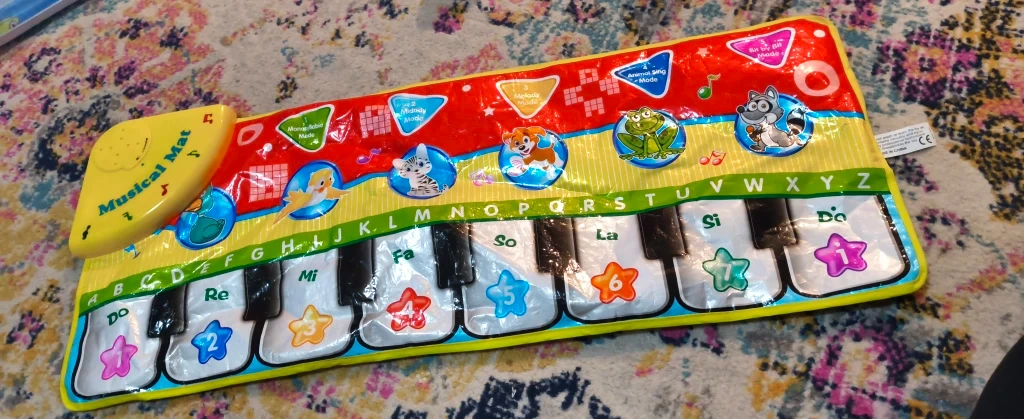 20Fun musical mat for kids! Features piano keys with letters and numbers to help learn sounds and notes. Great for early childhood development and musical exploration