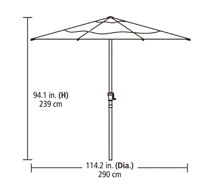 97End of Season Sale Water-Resistant Price in store - $168 Large canopy provides 70 square feet of optimal shade. Heavy-duty, rust-resistant, powder-coated steel frame with faux wood finish. Water & fade-resistant olefin fabric for long wear & durability. Crank handle to easily open & close canopy Coordinates with the Willow Springs Collection. Canopy has double vents which allows for good air circulation as well as reduces wind pressure Requires an Umbrella Base - not included. Umbrella measures 114.2 in. Dia. x 94.1 in. H