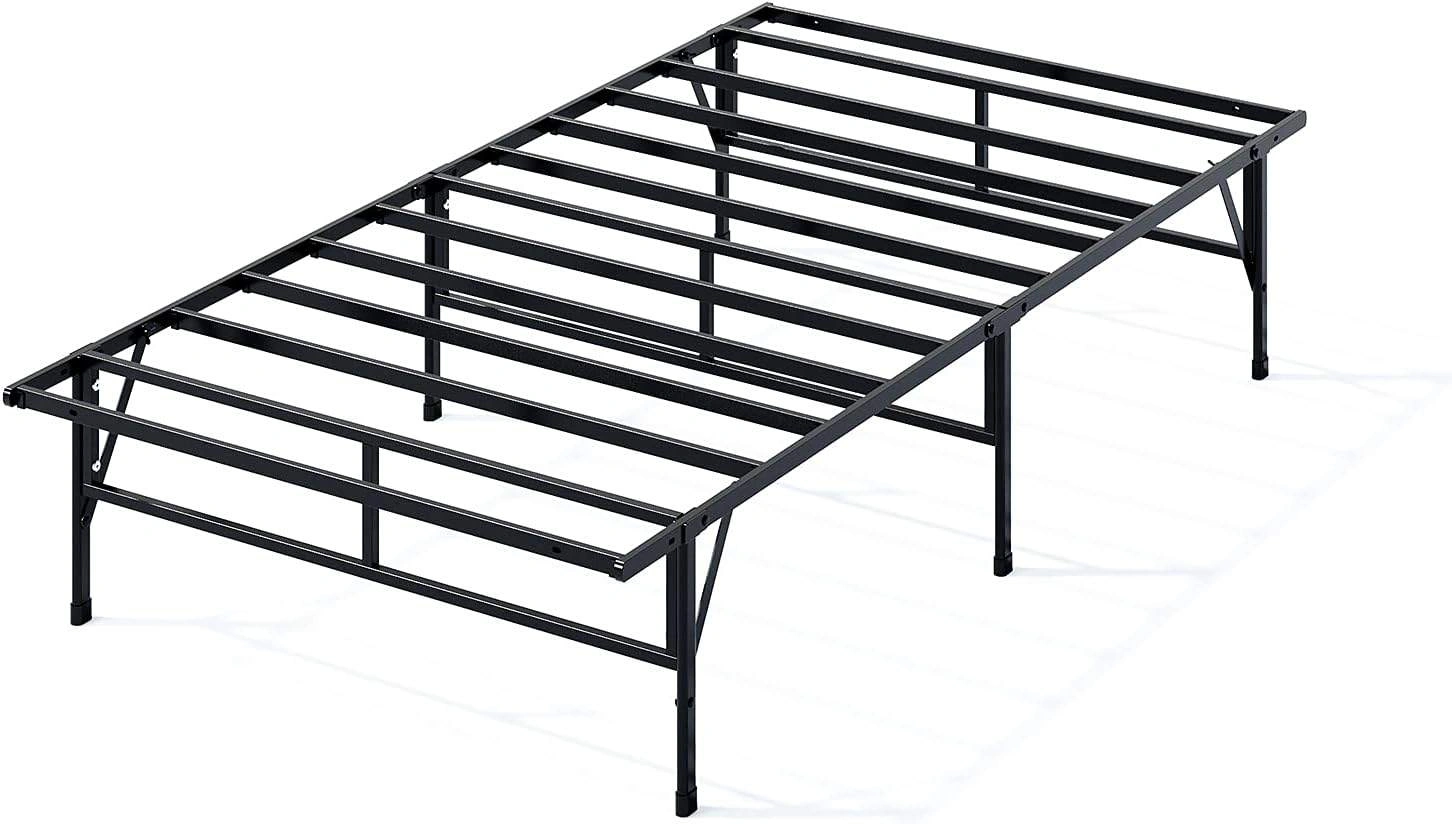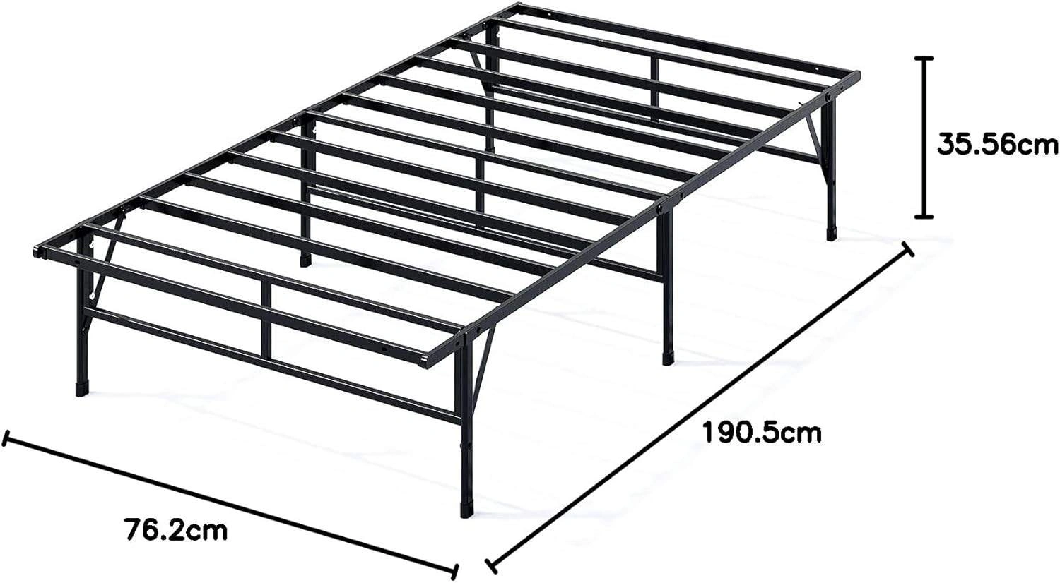 97Price in store - $ 129 Size : Narrow Twin Material : Alloy Steel Product Dimensions : 188L x 76.2W x 35.6H Centimetres Style : Traditional Special feature : Sturdy Colour : Black Finish type : Steel Included components : Frame, Slat, Support bars Compatible with mattress size : Twin narrow Brand : Zinus