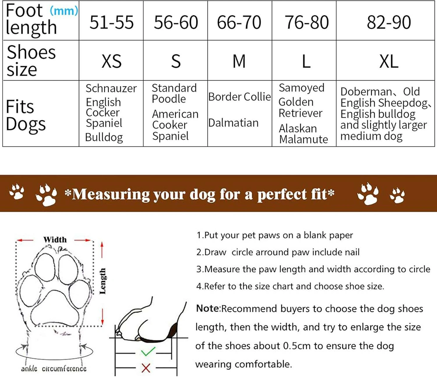 97About this item WATERPROOF: Warm inner lining material which protects the paws from snow, rain, muddy, salt and so on. REFLECTIVE: Two reflective straps for better visibility in the dark. The buckle on the back can be adjustable, easy to put in/take off NONSLIP: The rubber sole is durable, comfortable and environmental. Great for outdoor activity. Suitable for winter, snow, ice, rainy day, wet and so on. Design for large and medium dogs. Please measure dog paws before ordering. If the size is not suitable, please contact us!