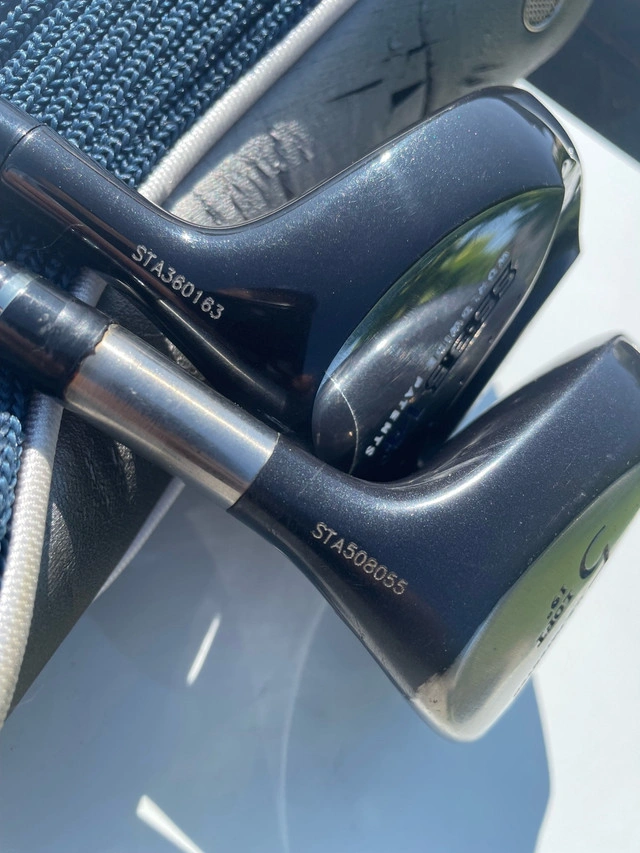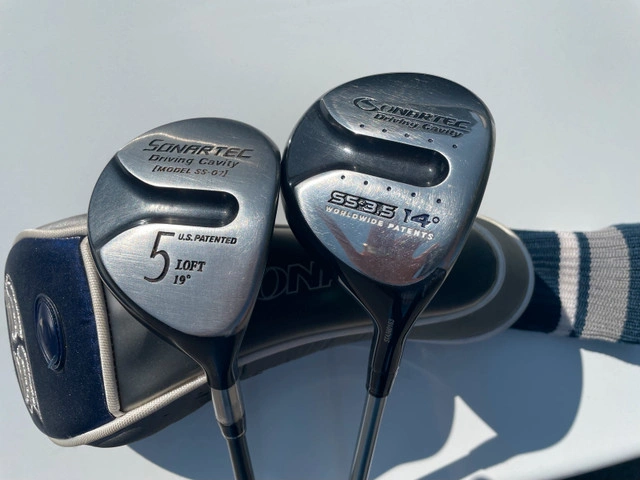 34Selling a Sonartec Driving Cavity Model SS 3.5 14 degree 3 wood and a Sonartec Driving Cavity Model 35 G1 19 degree 5 wood. Both of these golf clubs are in great used condition. The grips are in good shape. These clubs are perfect for improving your fairway game or off the tee when the driver isn't working for you. Fujikura and Penley shafts. * Sonartec Driving Cavity Model SS 3.5 14 degree 3 wood * Sonartec Driving Cavity Model 35 G1 19 degree 5 wood * Fujikura and Penley stiff shafts $75 for the set, $40 each. These clubs are priced to sell, so don't miss out! If you're seeing this ad, yes, they're still available!