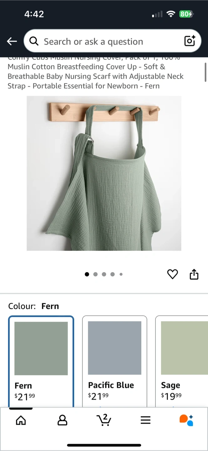 Selling a Comfy Cubs muslin nursing cover in the colour Fern! It's made of 100% muslin cotton, making it soft and breathable for baby. It also has an adjustable neck strap and is portable for newborns. Comes in the original box!