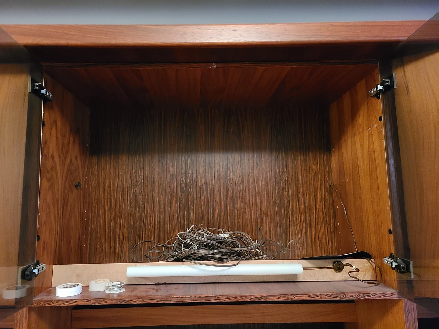MUST GO BY AUGUST 29! or else it will be thrown away. Great used condition. Beautiful wall unit with lots of storage. Made from wood, glass, & wood veneer. Features glass doors in the middle section, 4 open shelving areas, 5 cabinet sections, 3 lined drawers, a lockable bar with mirrors inside, a light fixture that was not reinstalled when it got moved here. Pick up only. Needs to be disassembled. Feel free to make an offer if interested.