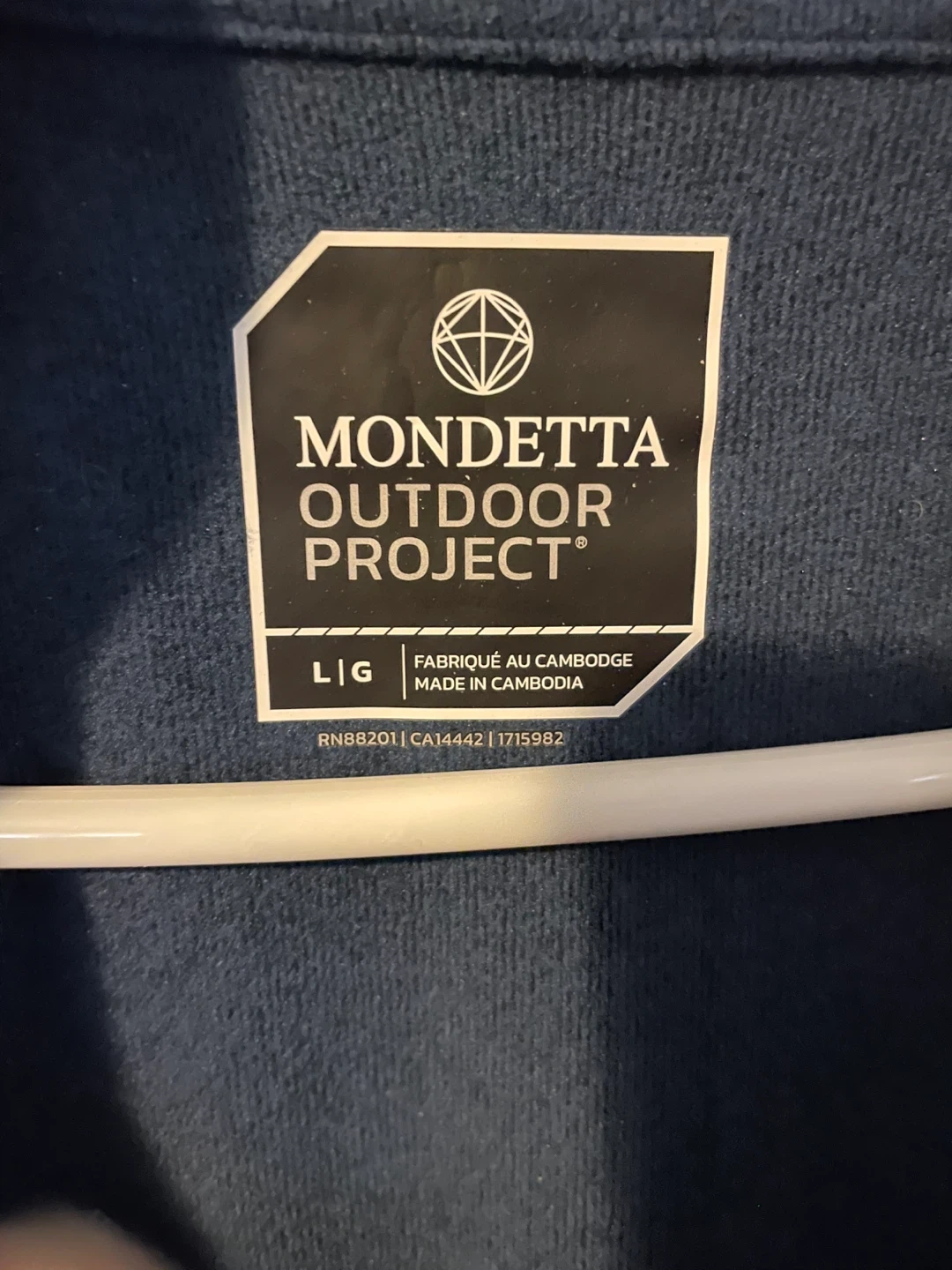 Selling a Mondetta Outdoor Project 1/4 zip pullover in size large. It's in great condition and perfect for outdoor activities or casual wear. The colour is a nice dark blue.