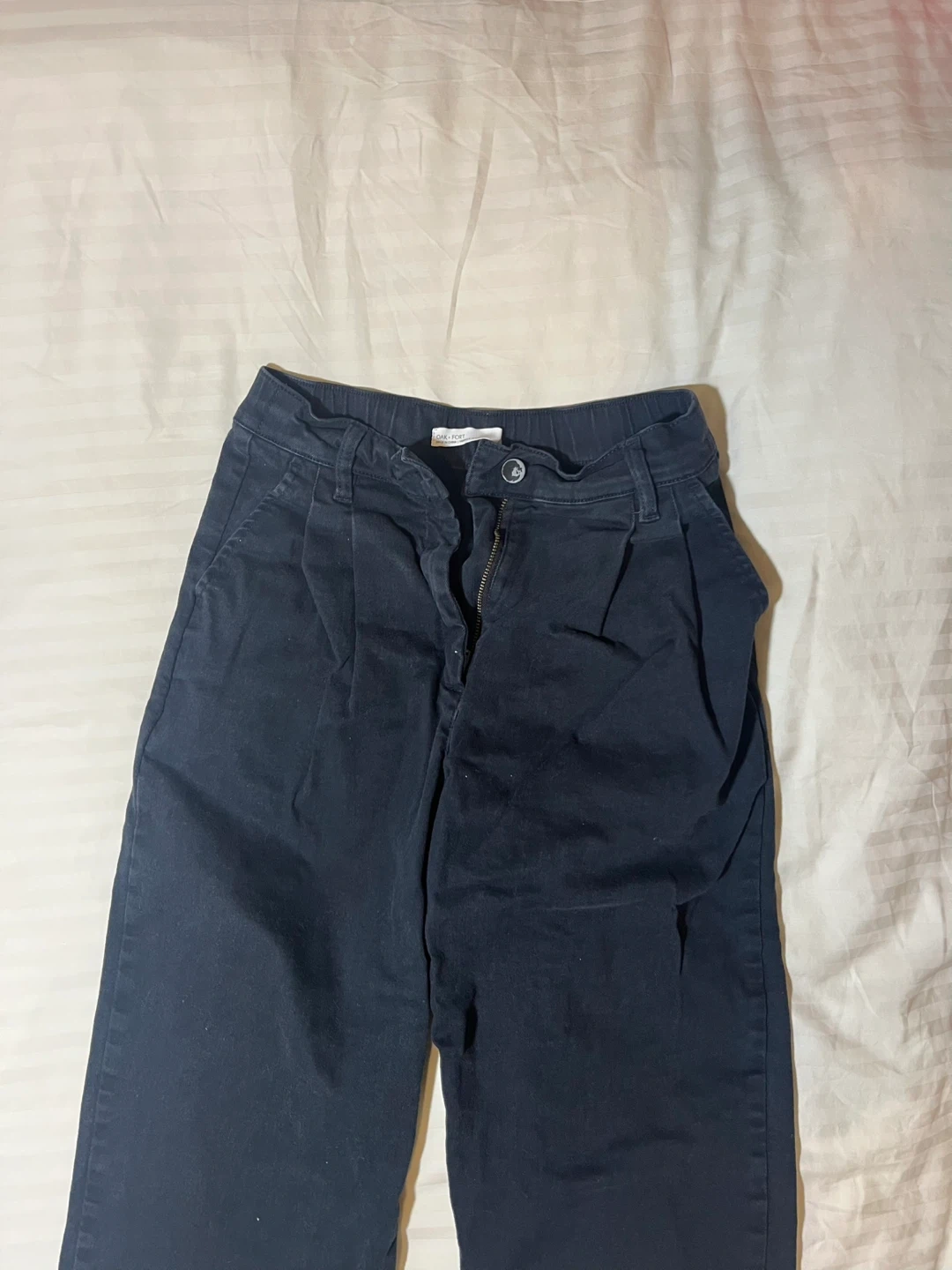 Black bottoms with a loose fit. Soft denim fabric. Ideal for versatile styling.
