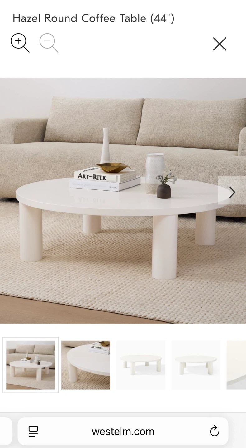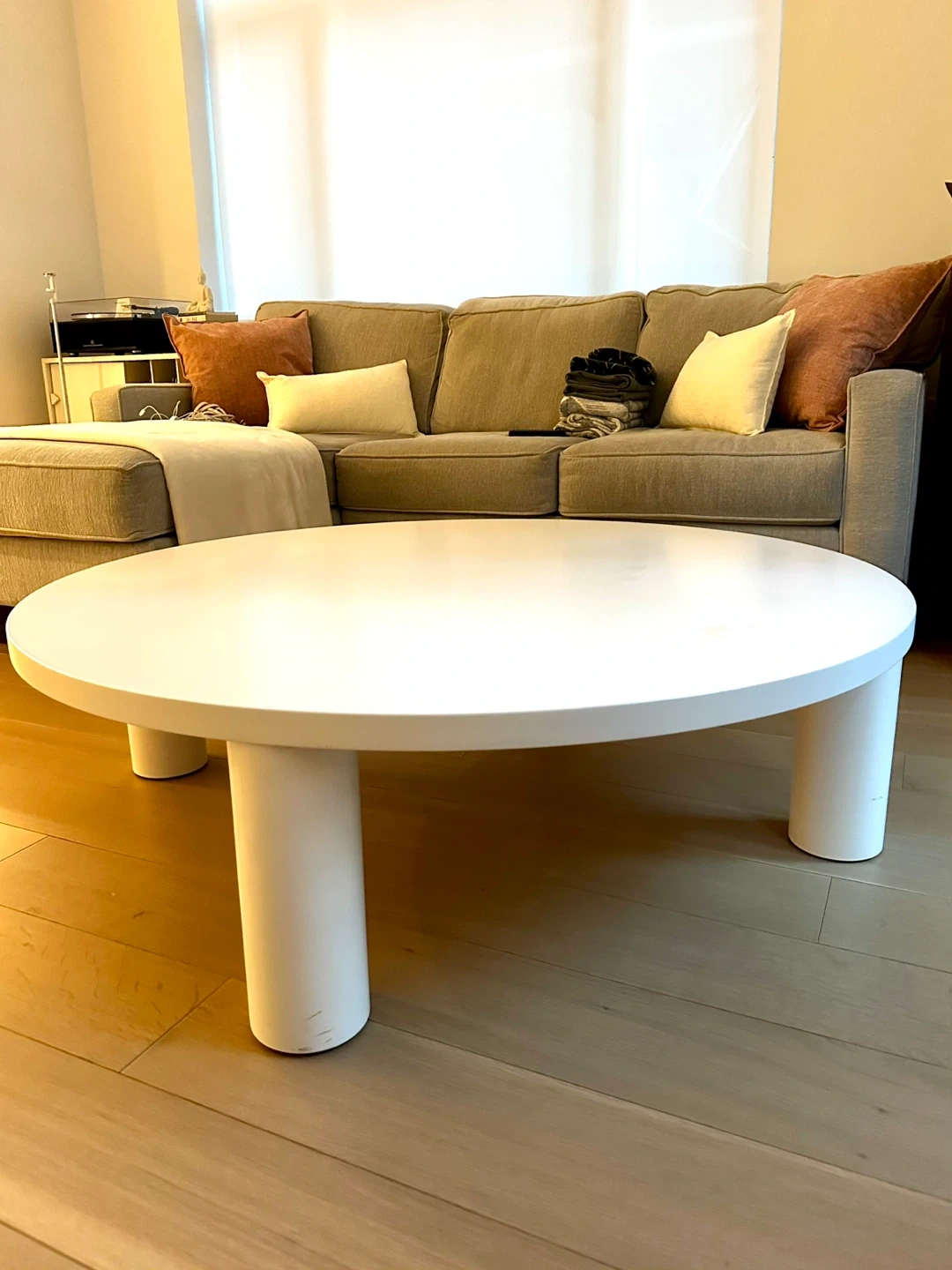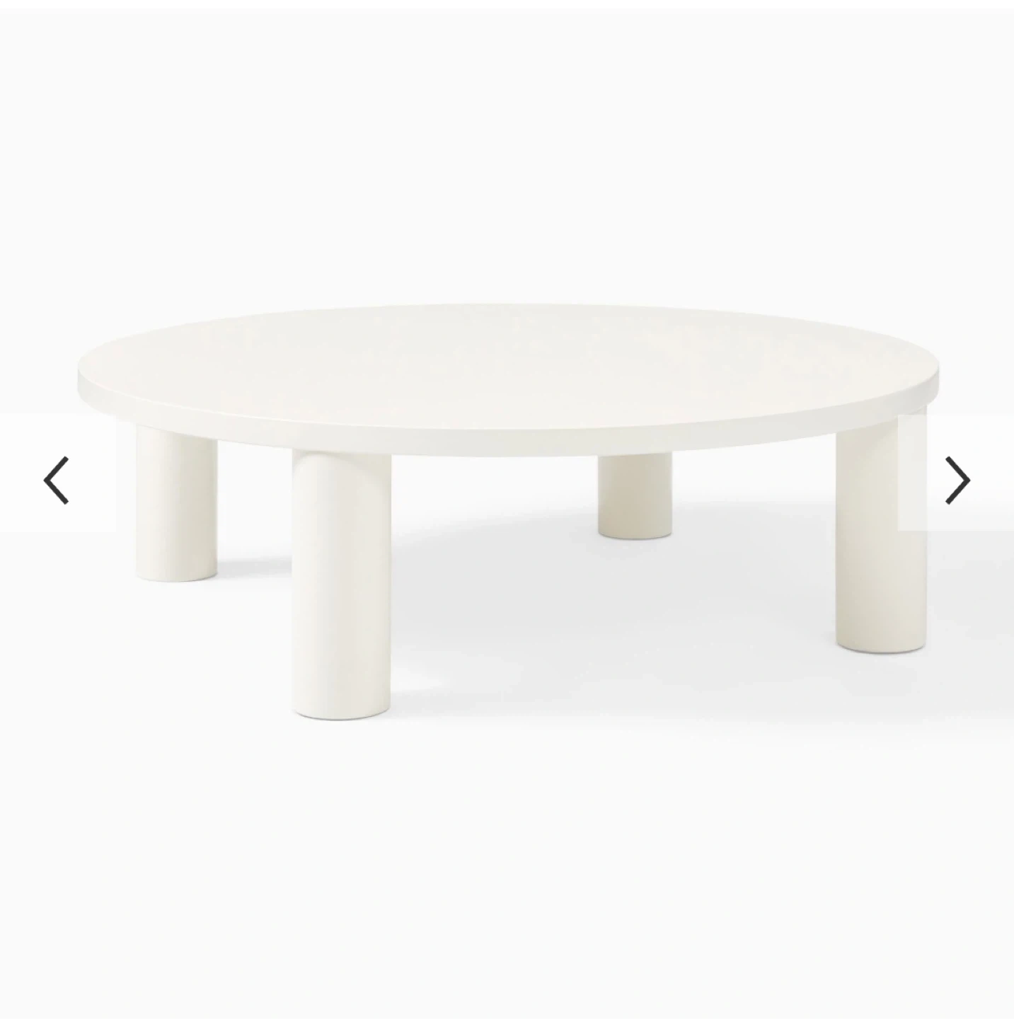 Selling a West Elm Hazel Round Coffee Table. There are some signs of use, as shown in the photos, but overall it's in good condition. The table is a great size for gathering around, at 44 inches in diameter. It's a beautiful addition to any home!