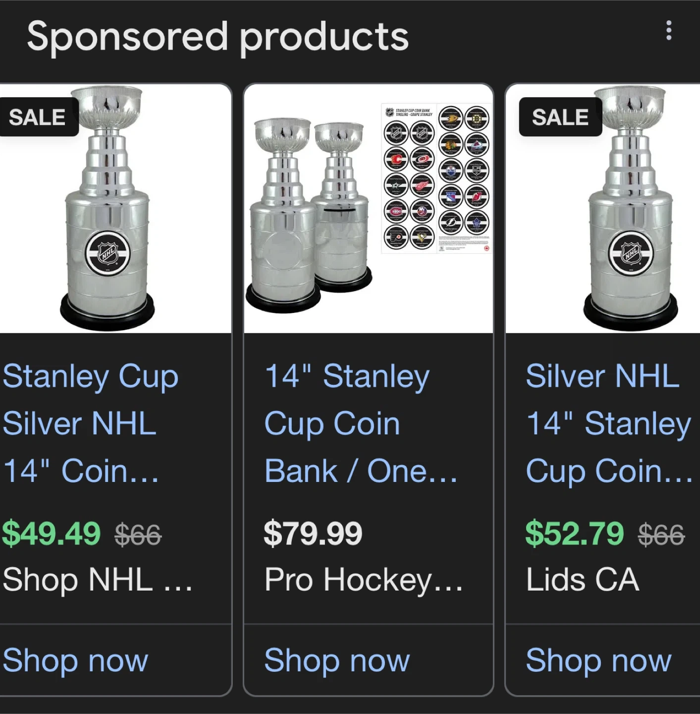 1000+Selling a silver NHL Stanley Cup coin bank! It's a fun way to save your change and show off your hockey pride at the same time. Originally bought for $65.99.