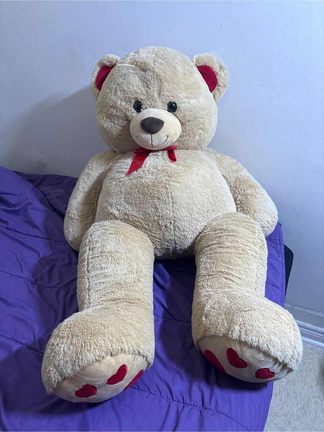 Selling a large, cuddly teddy bear! It's in great condition and ready for a new home. Perfect for kids or anyone who loves a soft, huggable friend.